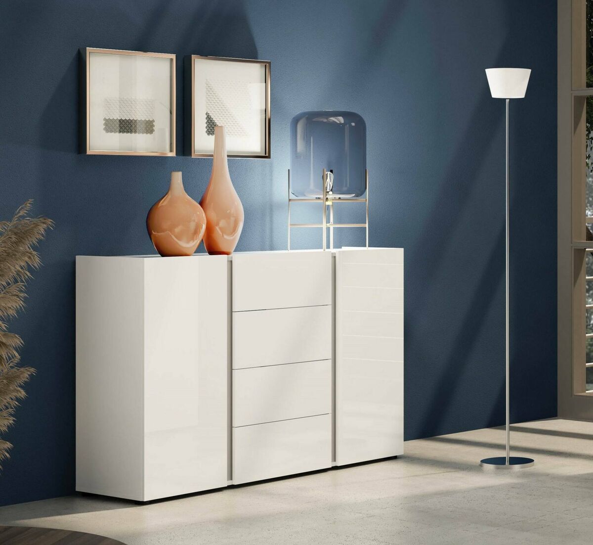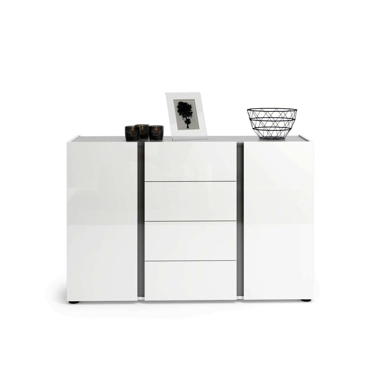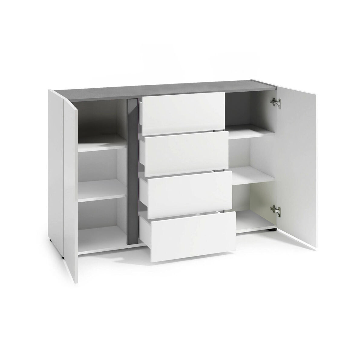CREDENZA - Buffet de sala, Aparador de sala, Despensa de cozinha, Fabricado em Itália, 140x38h92 cm, Branco brilhante e Antracite.