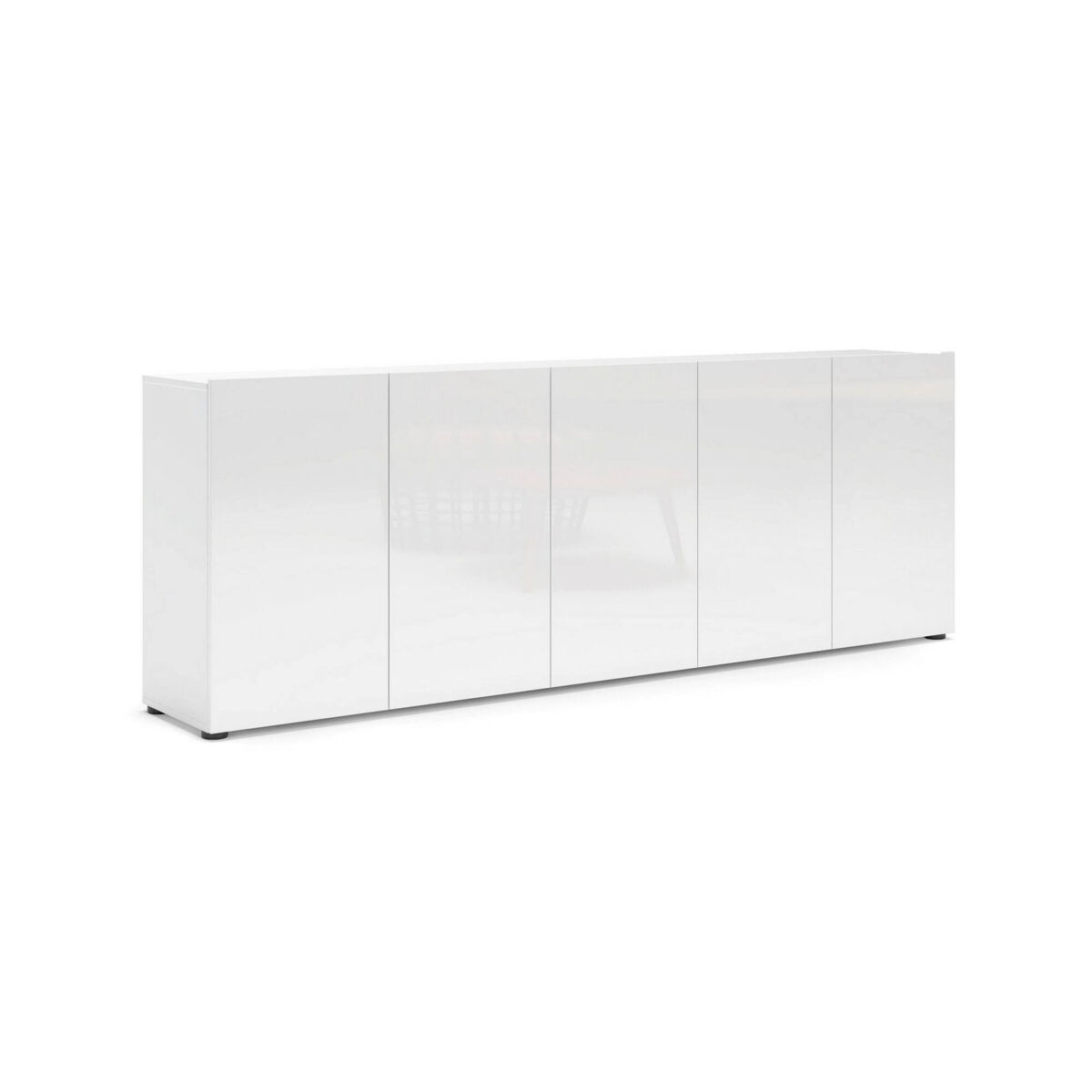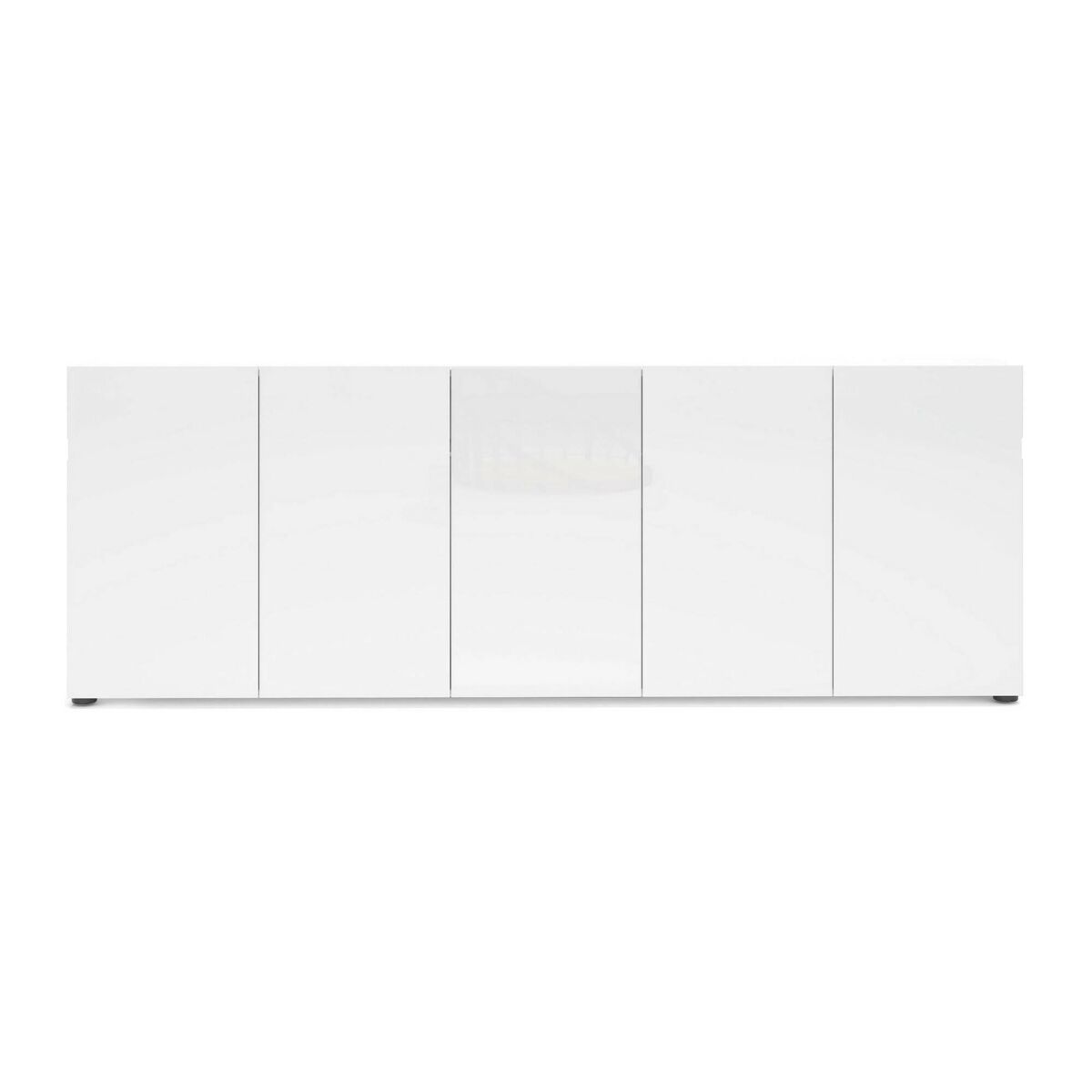 CREDENZA - Buffet de sala, Aparador de sala, Despensa de cozinha, Fabricado na Itália, 225x38h79 cm, Branco brilhante.