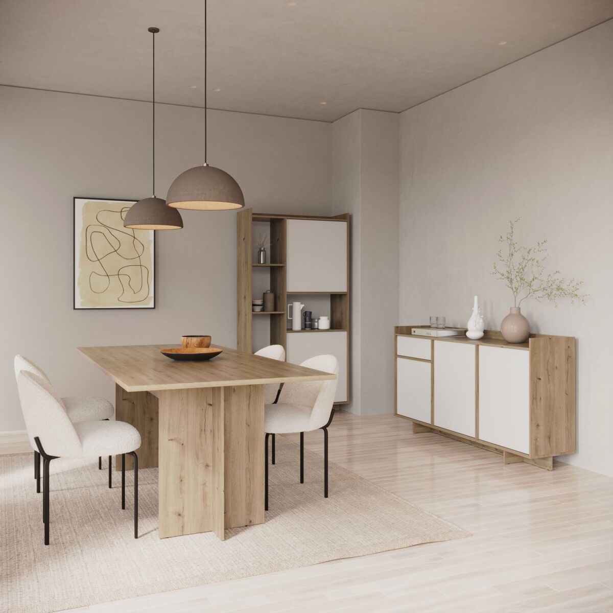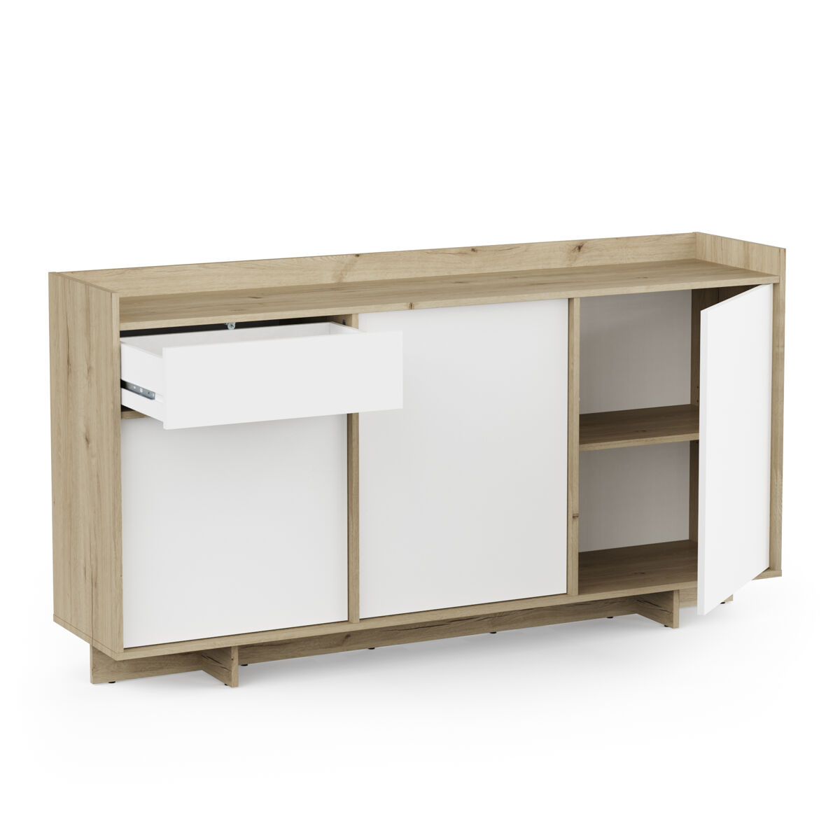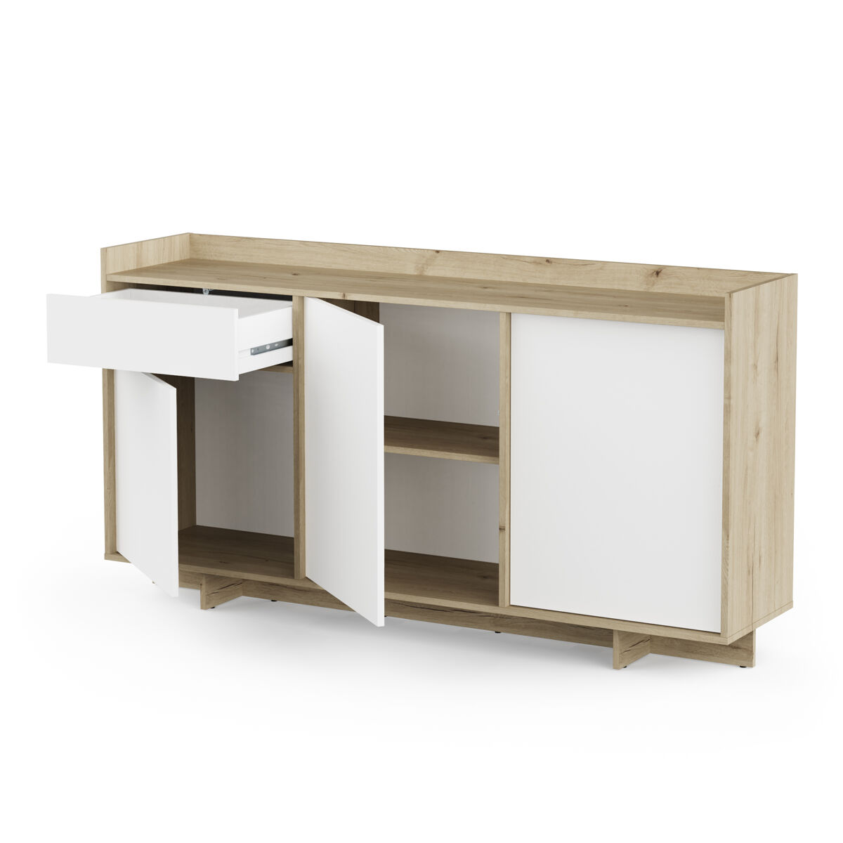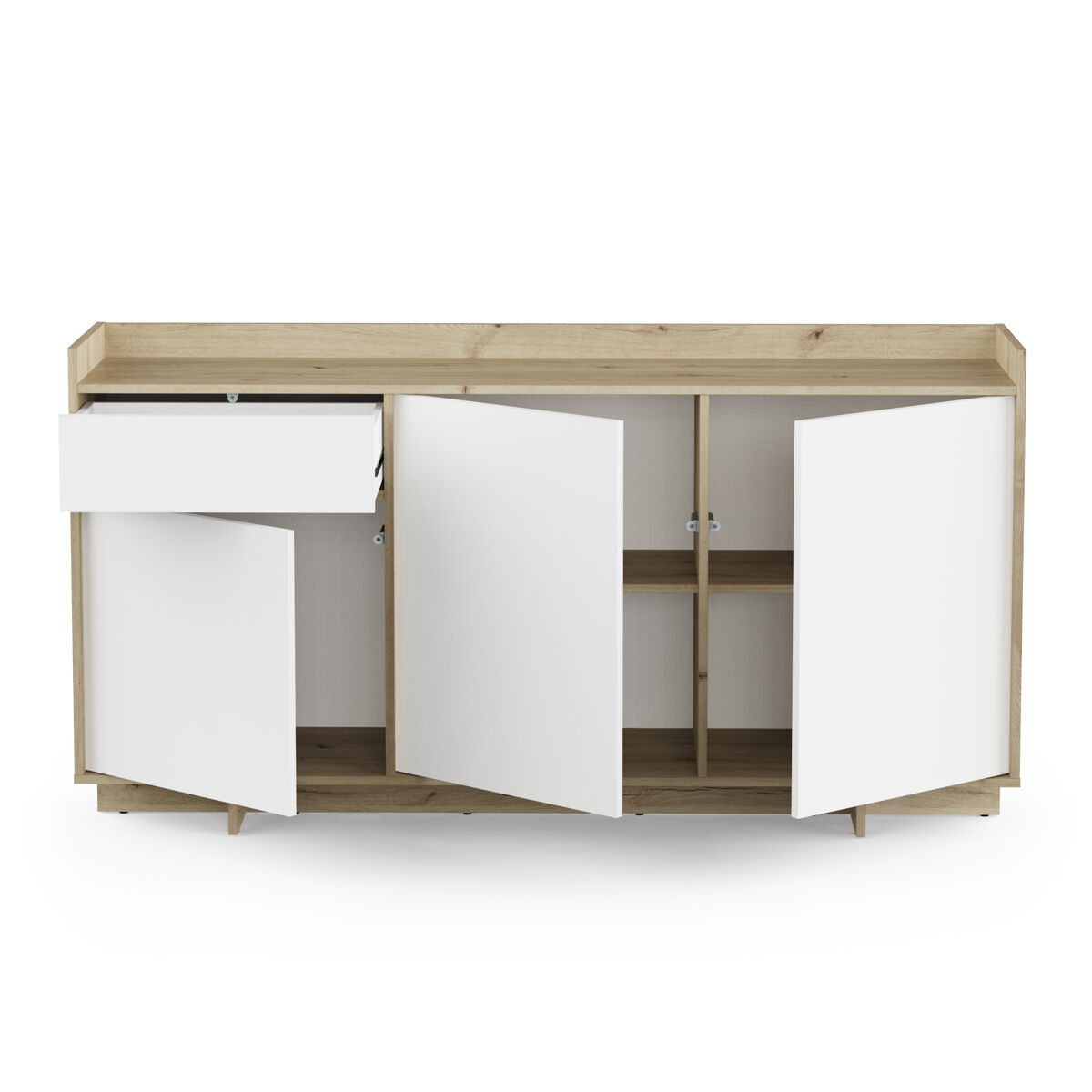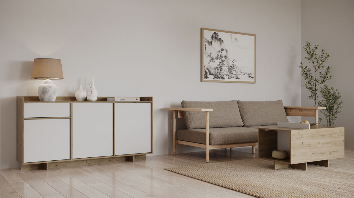 O elegante aparador CLAP combina a beleza intemporal da verdadeira madeira de carvalho com detalhes modernos. Tem um acabamento branco mate. Possui 3 portas e 1 gaveta. Garante um amplo espaço de arrumação. Fabricado com materiais de alta qualidade e com um design robusto. Um investimento duradouro que embelezará a sua casa. Não perca a oportunidade de dar um apontamento de sofisticação à sua casa.