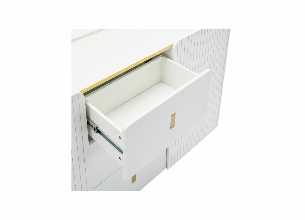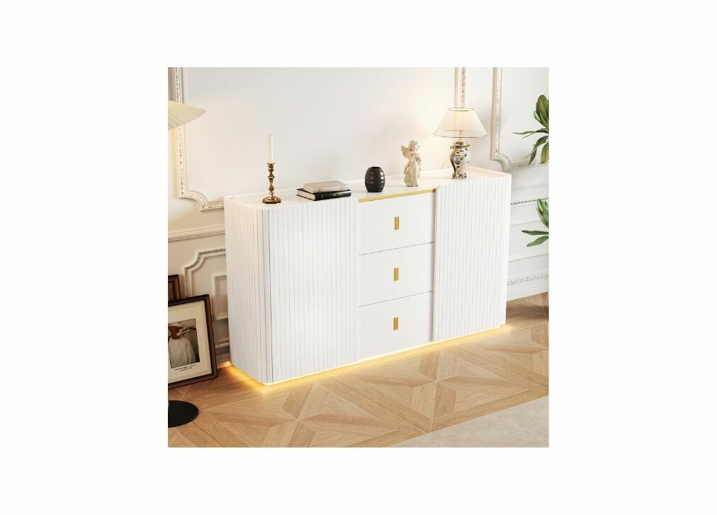 Elegante aparador branco 2 portas, 2 gavetas com iluminação LED 150*35*80cm KRAUDREL