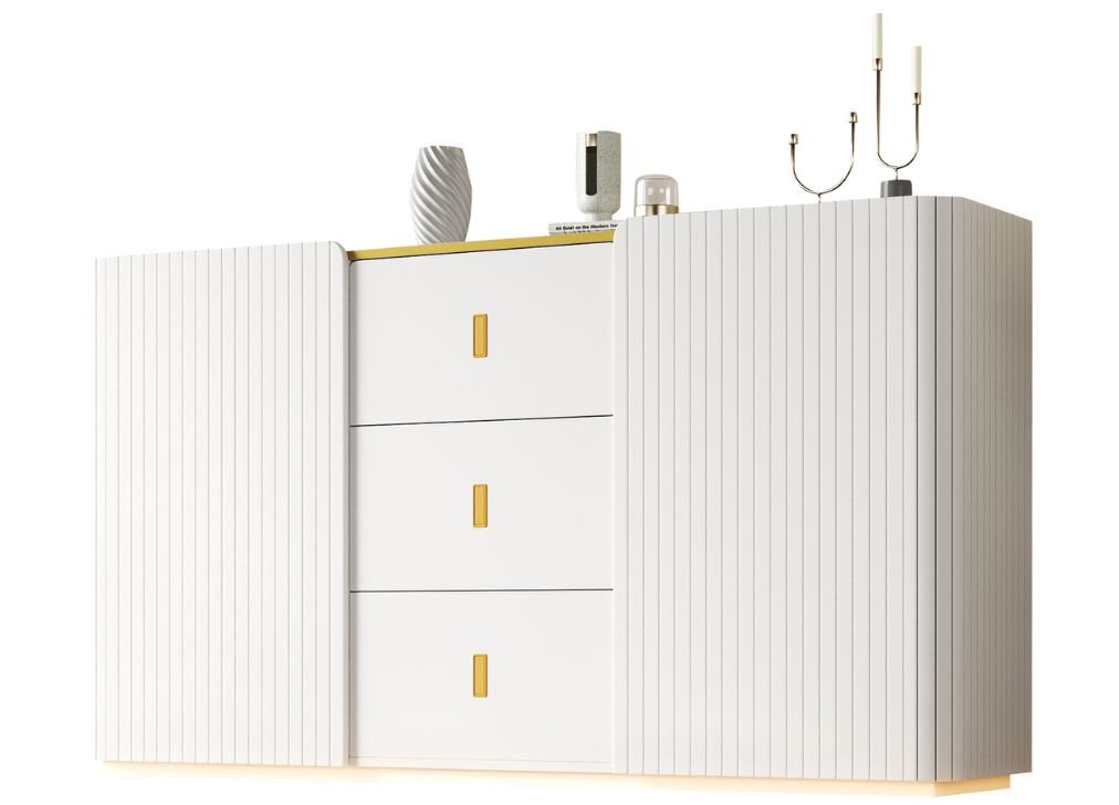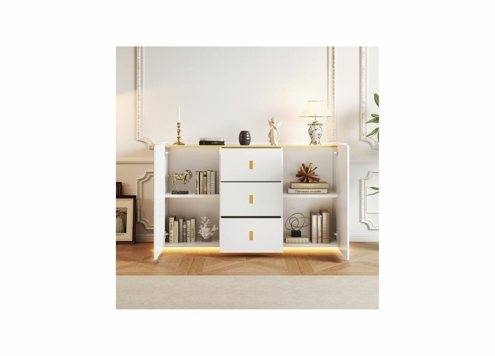 Luzes de ambiente que mudam de cor - Ilumine o seu ambiente com a faixa LED RGB integrada no nosso aparador de buffet. Ajuste o brilho e alterne entre cores vibrantes de acordo com o seu estado de espírito ou evento. Sincronize as luzes com a música através da nossa aplicação para criar exposições encantadoras que encherão as noites de fantasia.
