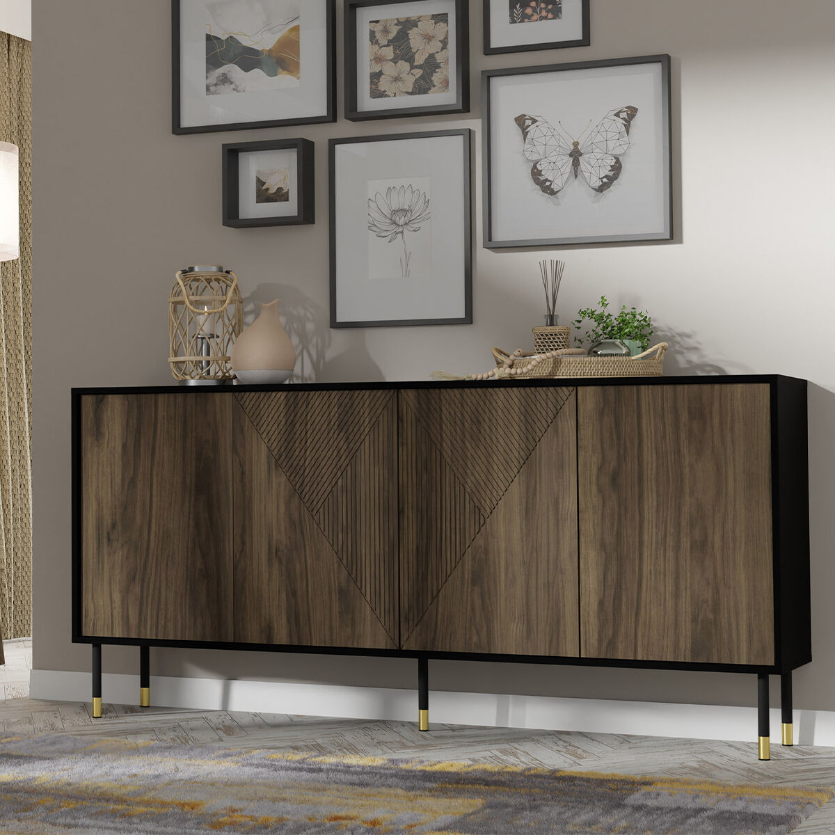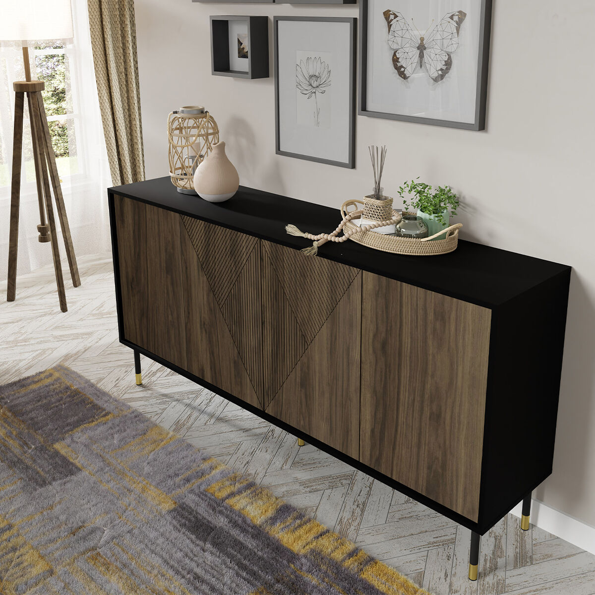 Aparador de 4 portas em madeira aglaé e preto