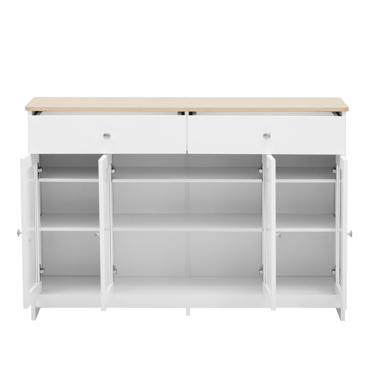 Aparador de mdf com 4 portas e 2 gavetas,branco+natural