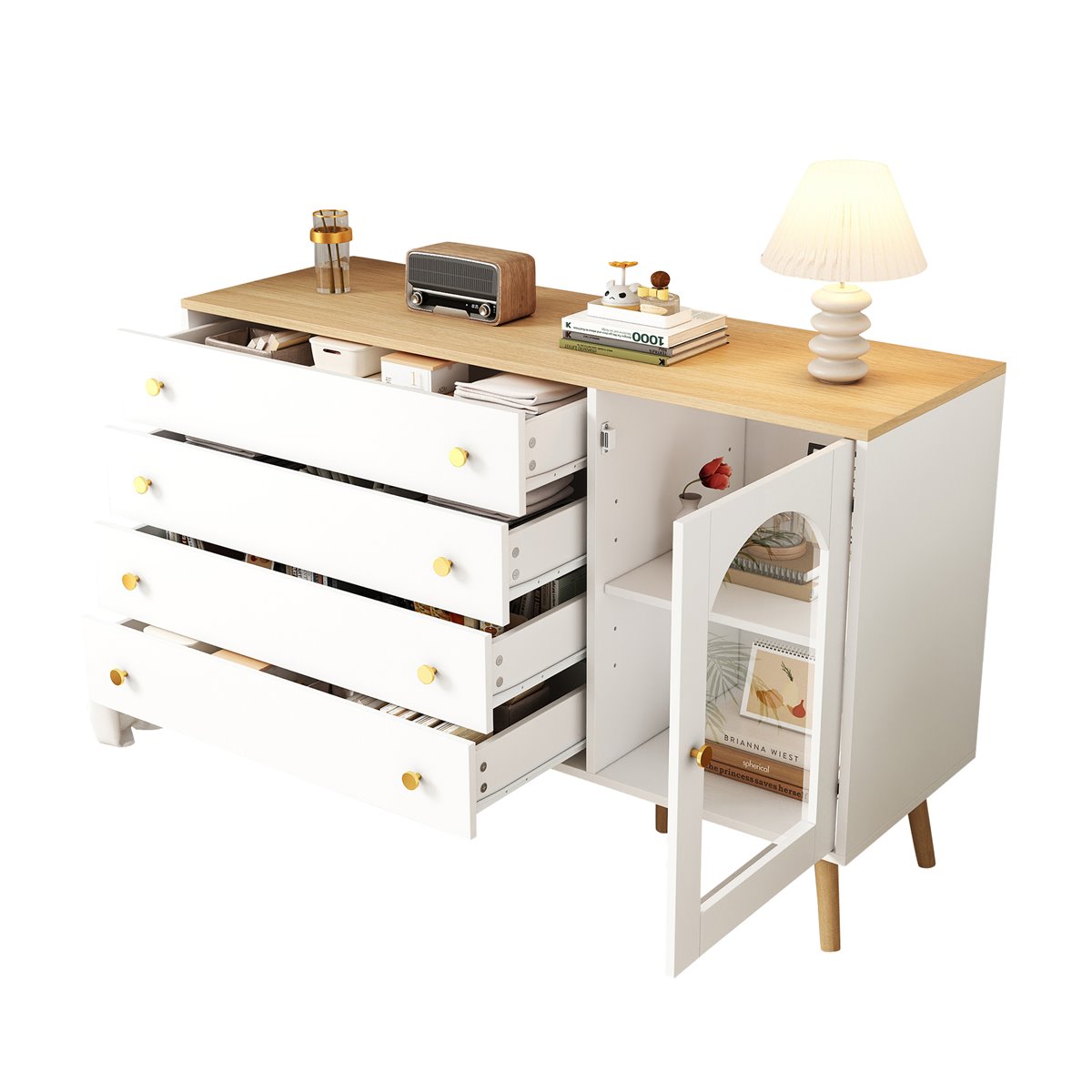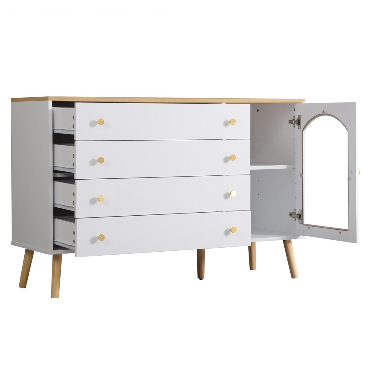 Resistente e Durável: As 4 gavetas brancas são fabricadas em aglomerado de madeira de alta qualidade, durável e muito resistente. As tábuas originais na cor madeira são revestidas com uma tinta lisa, antiderrapante, impermeável e de fácil manutenção.