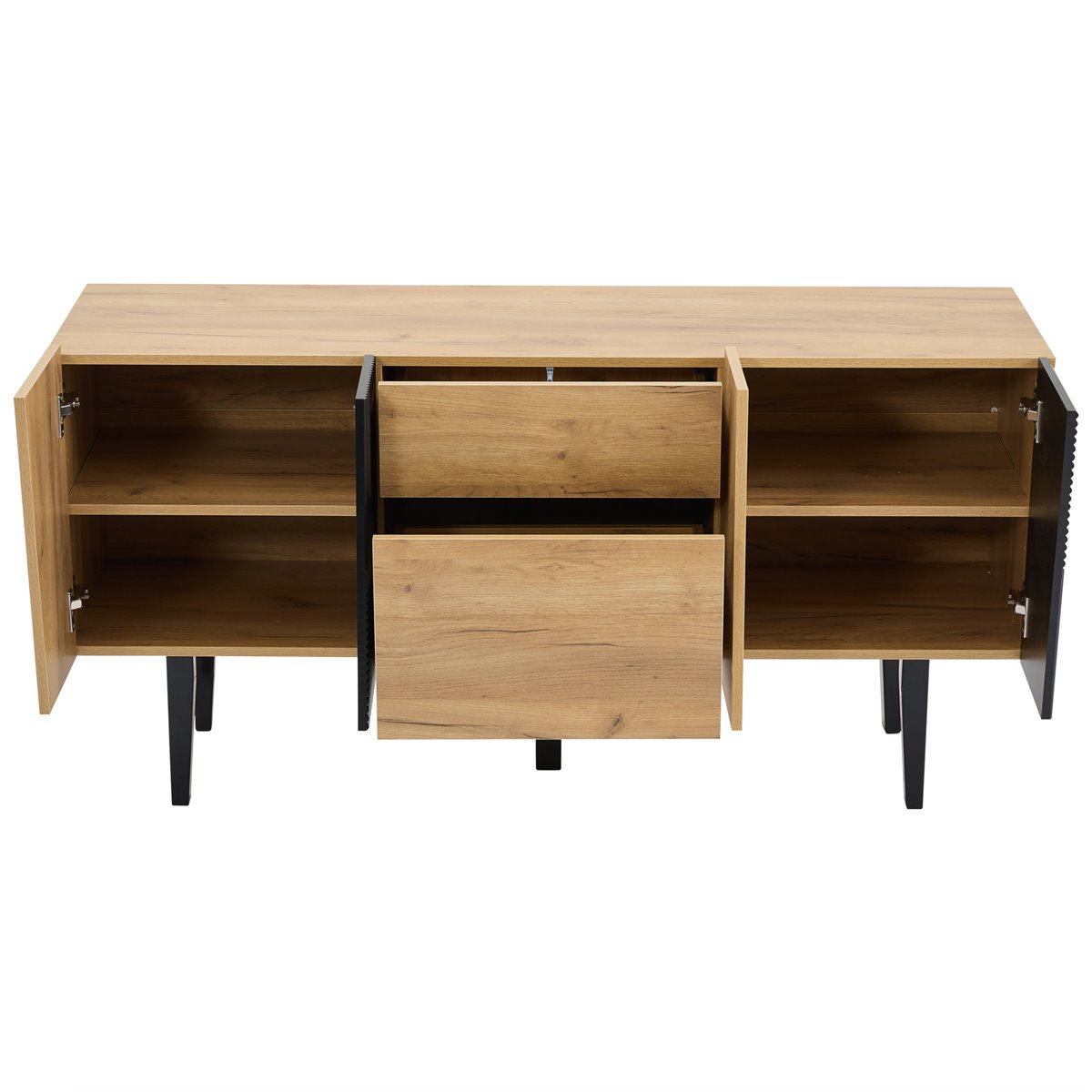 Este aparador moderno, que também pode ser utilizado como armário de entrada, possui puxadores ocultos para um aspeto clean. Com os seus veios de madeira, adapta-se a uma variedade de estilos de interiores, desde o minimalismo moderno ao country americano e a temas rústicos tranquilos. É um ótimo complemento para realçar a beleza da sua casa.