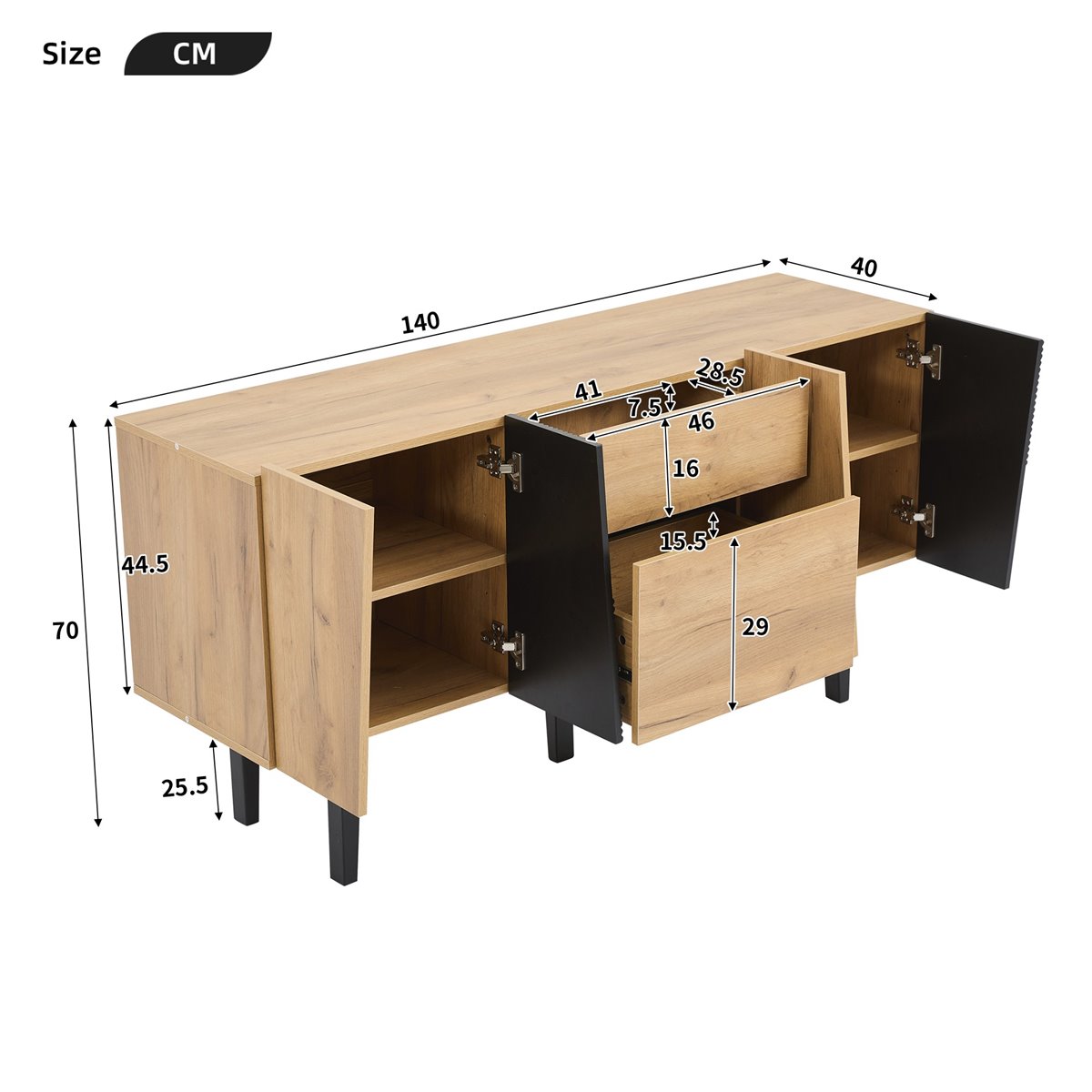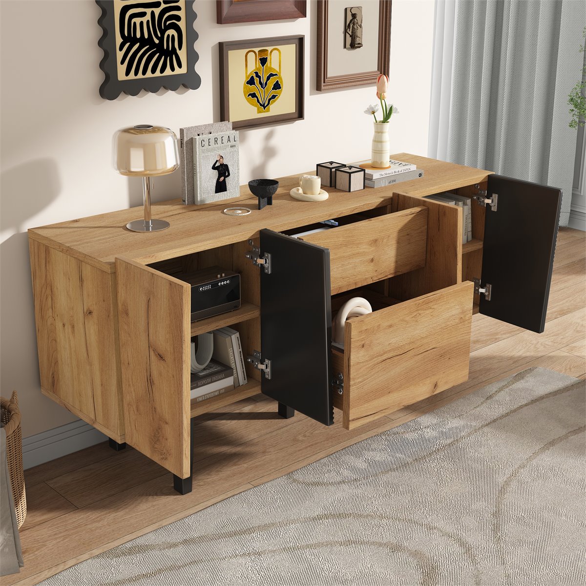 【Amplo Espaço de Armazenamento】Maiores do que os aparadores comuns, as gavetas superior e inferior medem 16 cm e 29 cm de altura, respetivamente, e as prateleiras nas portas que abrem para ambos os lados têm altura ajustável para satisfazer as suas diferentes necessidades de armazenamento.