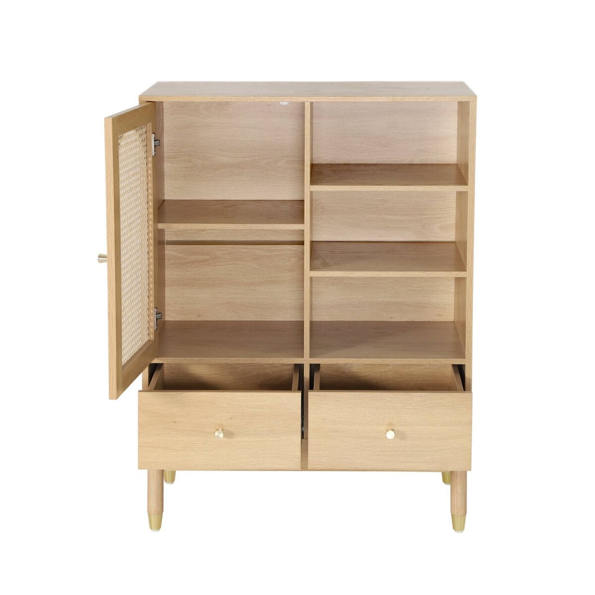 O buffet Judith traz um toque de suavidade e caráter ao seu interior, como um convite para desacelerar. Este buffet, com espírito boêmio e detalhes dourados discretos, encaixa-se naturalmente em uma sala de estar ou sala de jantar, criando uma atmosfera calorosa e acolhedora. Sua porta e suas duas gavetas em cana sugerem um trabalho artesanal que faz toda a diferença, enquanto seus pés combinam estabilidade e elegância. Torna-se rapidamente indispensável, tanto pelo seu espaço de armazenamento quanto pela alma que insufla na peça.