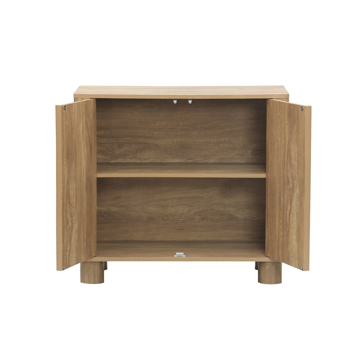 Desejo de evasão sem sair de casa? O buffet Pondi traz um toque exótico e acolhedor ao seu interior, com seu efeito madeira de manguier e suas portas com motivos lunares vindos diretamente de um diário de viagem. Suas duas portas reversíveis brincam com as formas: arredondadas para dentro para uma suavidade gráfica ou voltadas para fora para mais caráter. Prático e cheio de charme, o buffet Pondi alia estilo e funcionalidade: esconde lindamente sua louça, seus papéis ou seus objetos preferidos, ao mesmo tempo em que adiciona uma verdadeira personalidade à peça. E graças à sua abertura por pressão, chega de puxadores volumosos! Apaixonamo-nos também por suas pernas em madeira totalmente arredondadas, estáveis e cheias de suavidade.