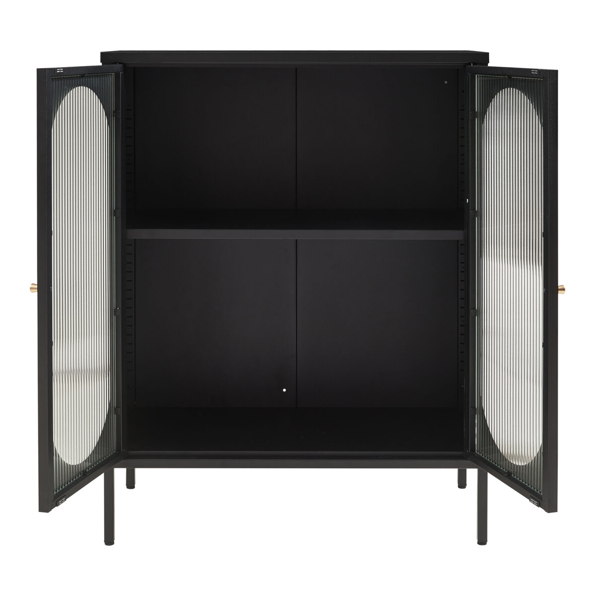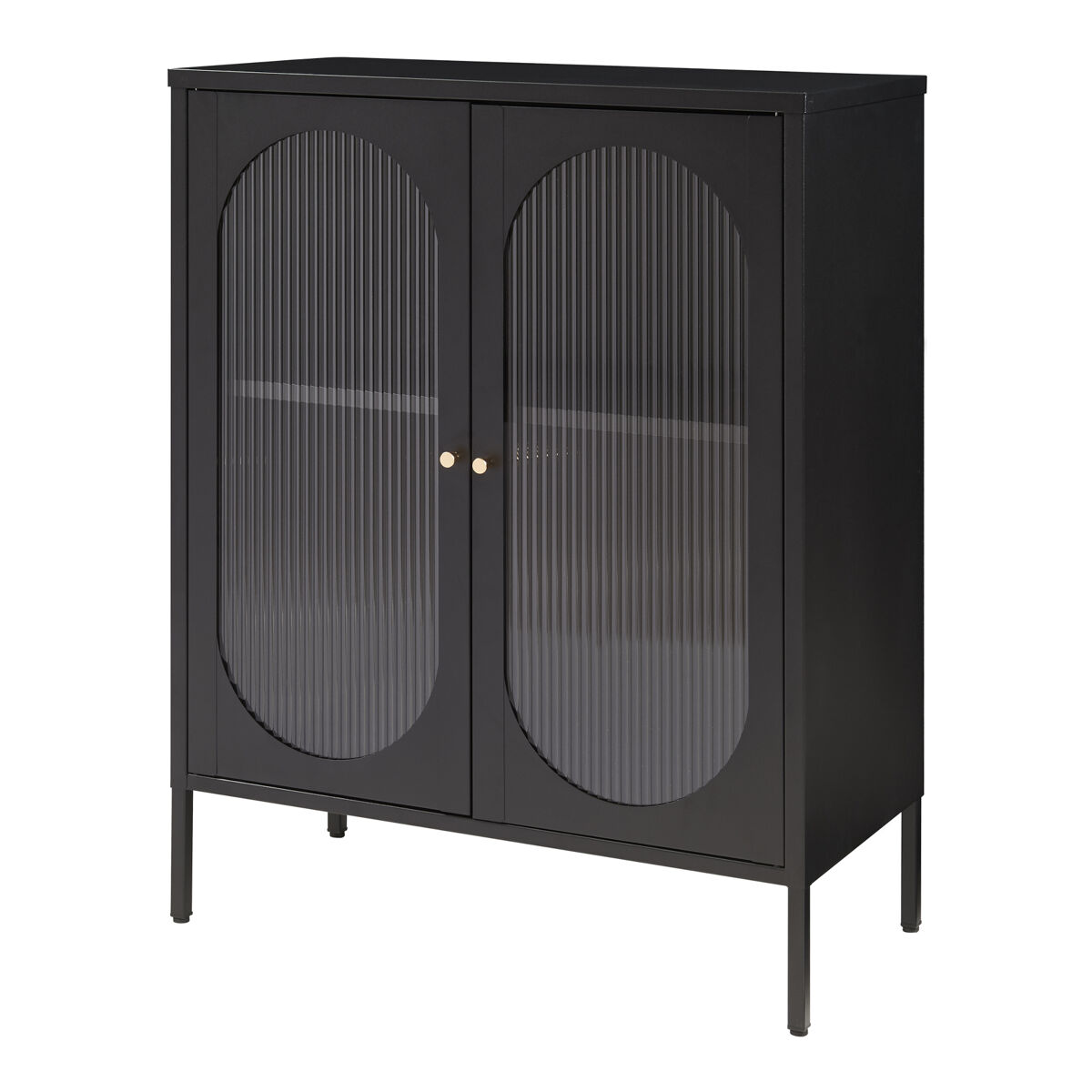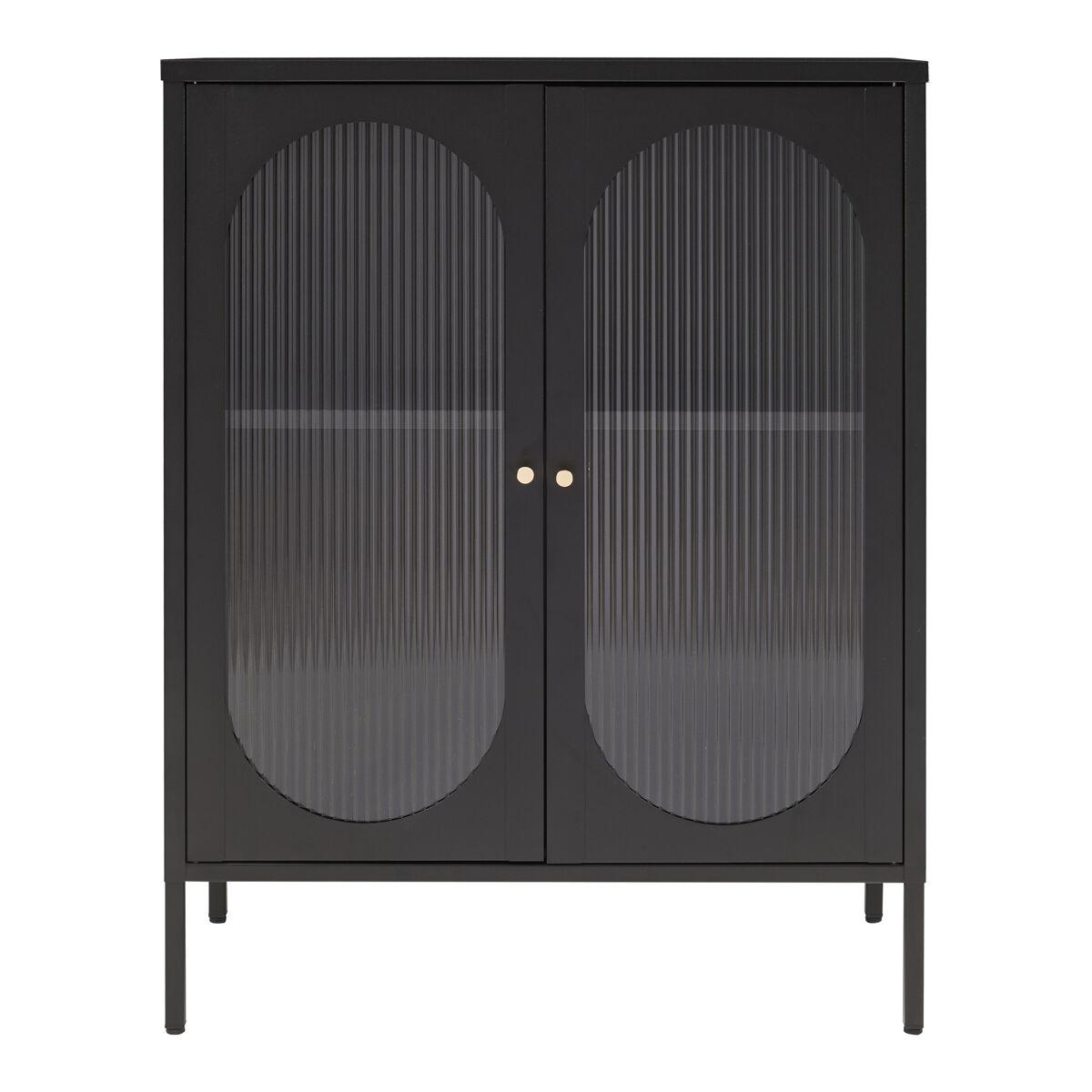 As duas portas de vidro caneladas criam um sotaque especial e tornam o móvel um chamariz. São fáceis de abrir com os puxadores redondos de metal e fecham de forma silenciosa e fiável graças ao fecho magnético.