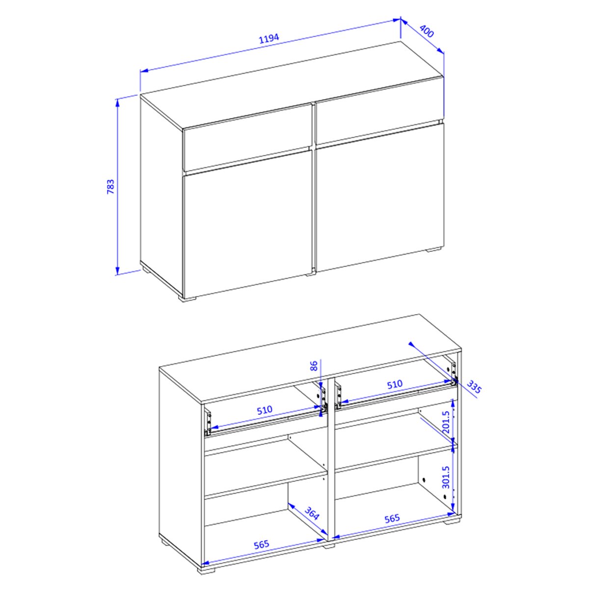 Lilia Taupe Aparador de 2 portas e 2 gavetas