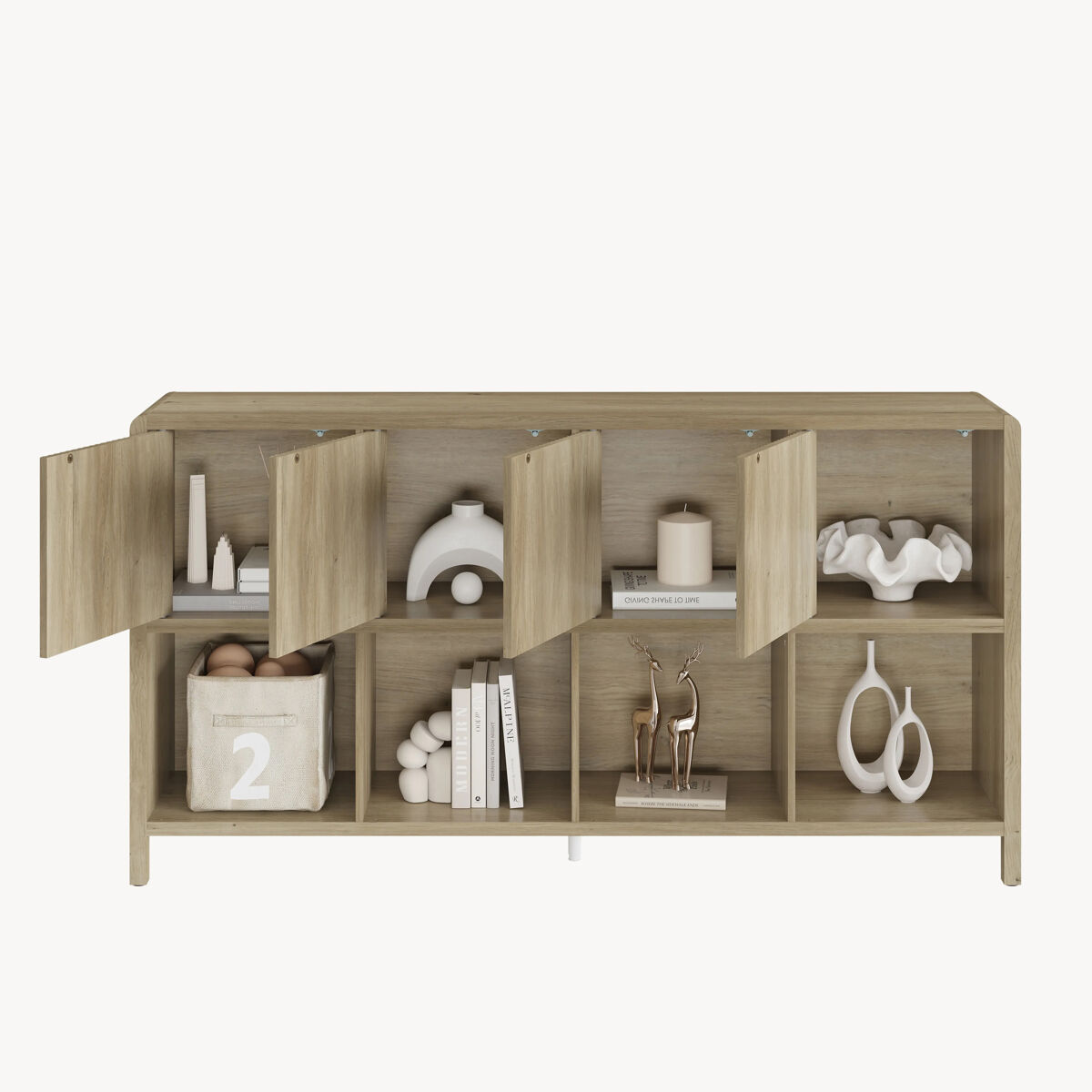 O aparador é ideal para armazenar todos os tipos de itens. A prateleira superior e os compartimentos abertos criam espaço para plantas e decorações, enquanto livros, DVDs e todos os outros itens podem ser armazenados com fácil acesso no interior.