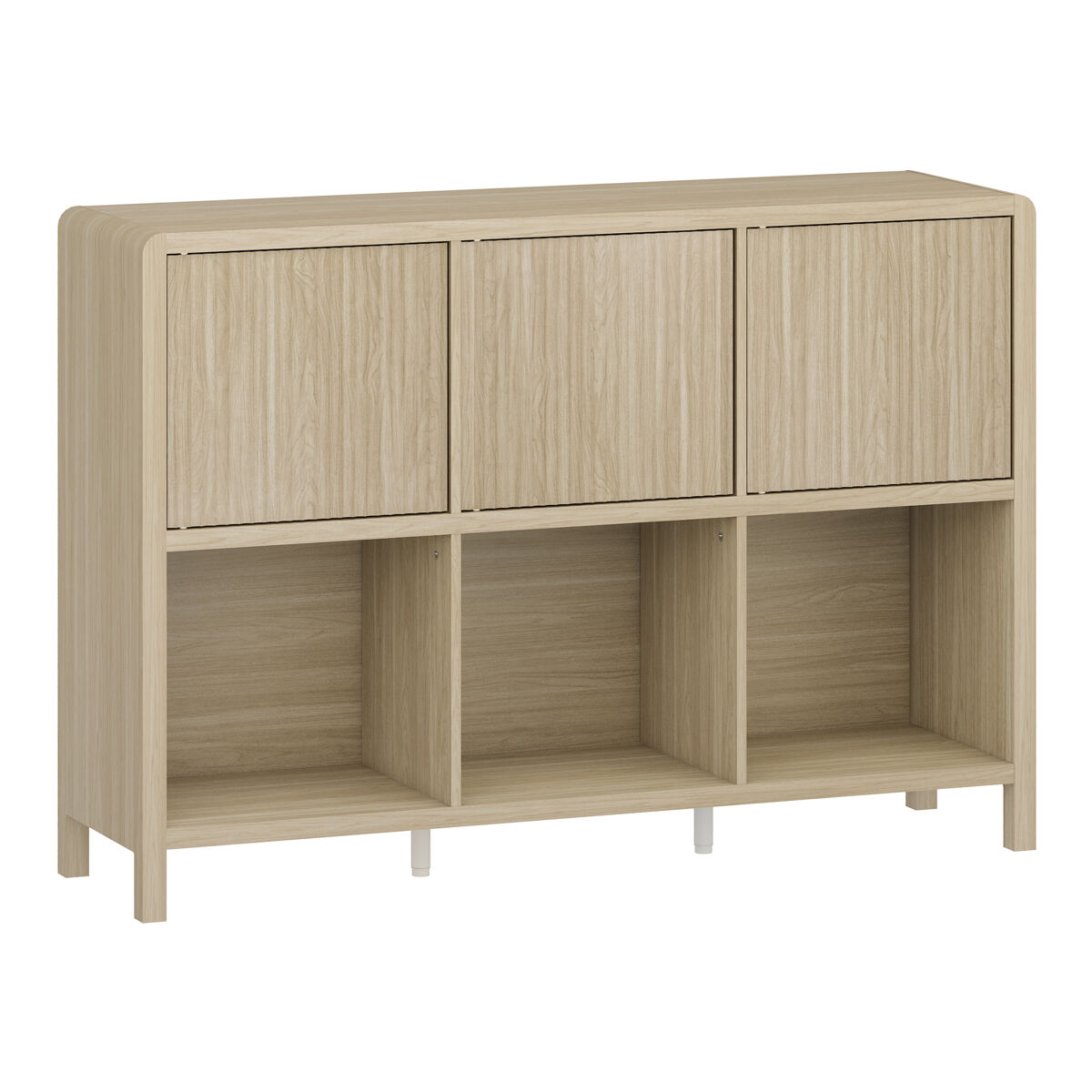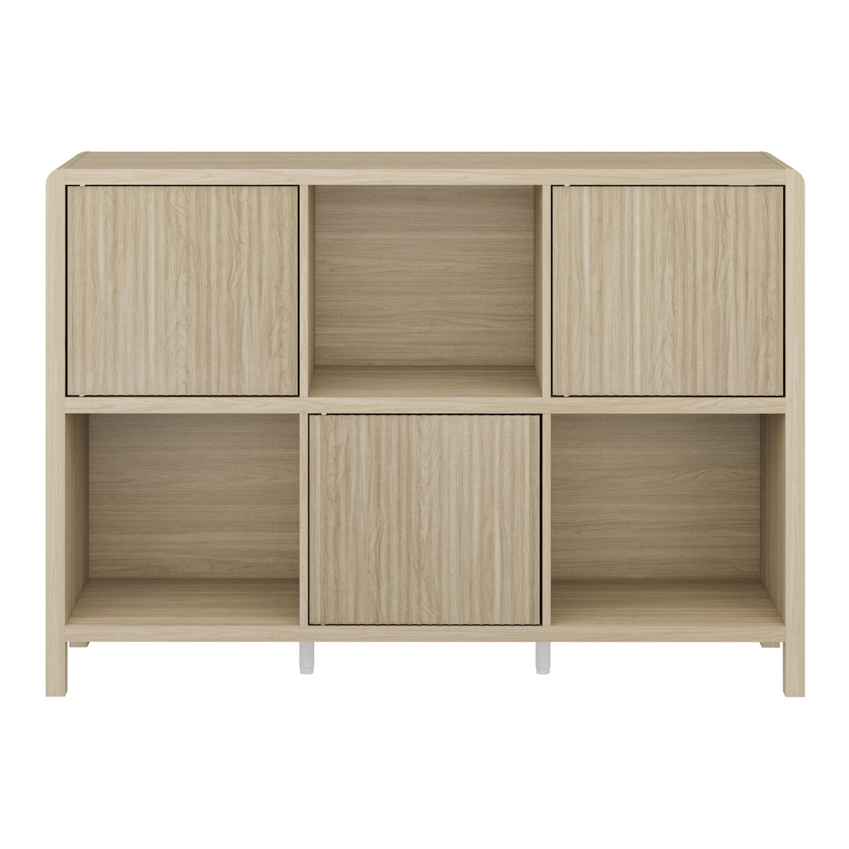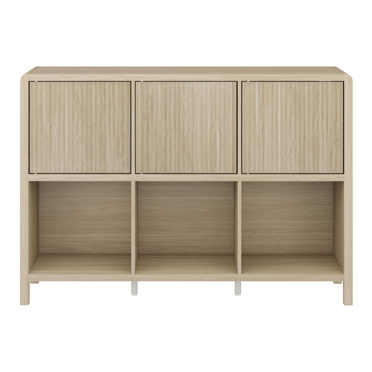 O armário para sala de estar é uma peça de mobiliário elegante e prática que é o complemento perfeito para a sua sala de estar. Tem três compartimentos de armazenamento abertos e três compartimentos fechados com portas.