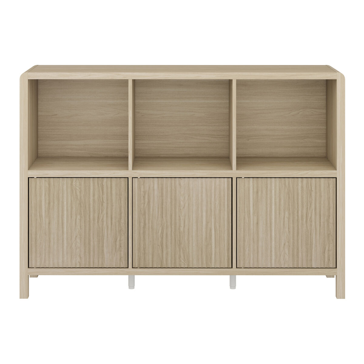 O aparador é ideal para armazenar todos os tipos de itens. A prateleira superior e os compartimentos abertos criam espaço para plantas e decorações, enquanto livros, DVDs e todos os outros itens podem ser armazenados com fácil acesso no interior.