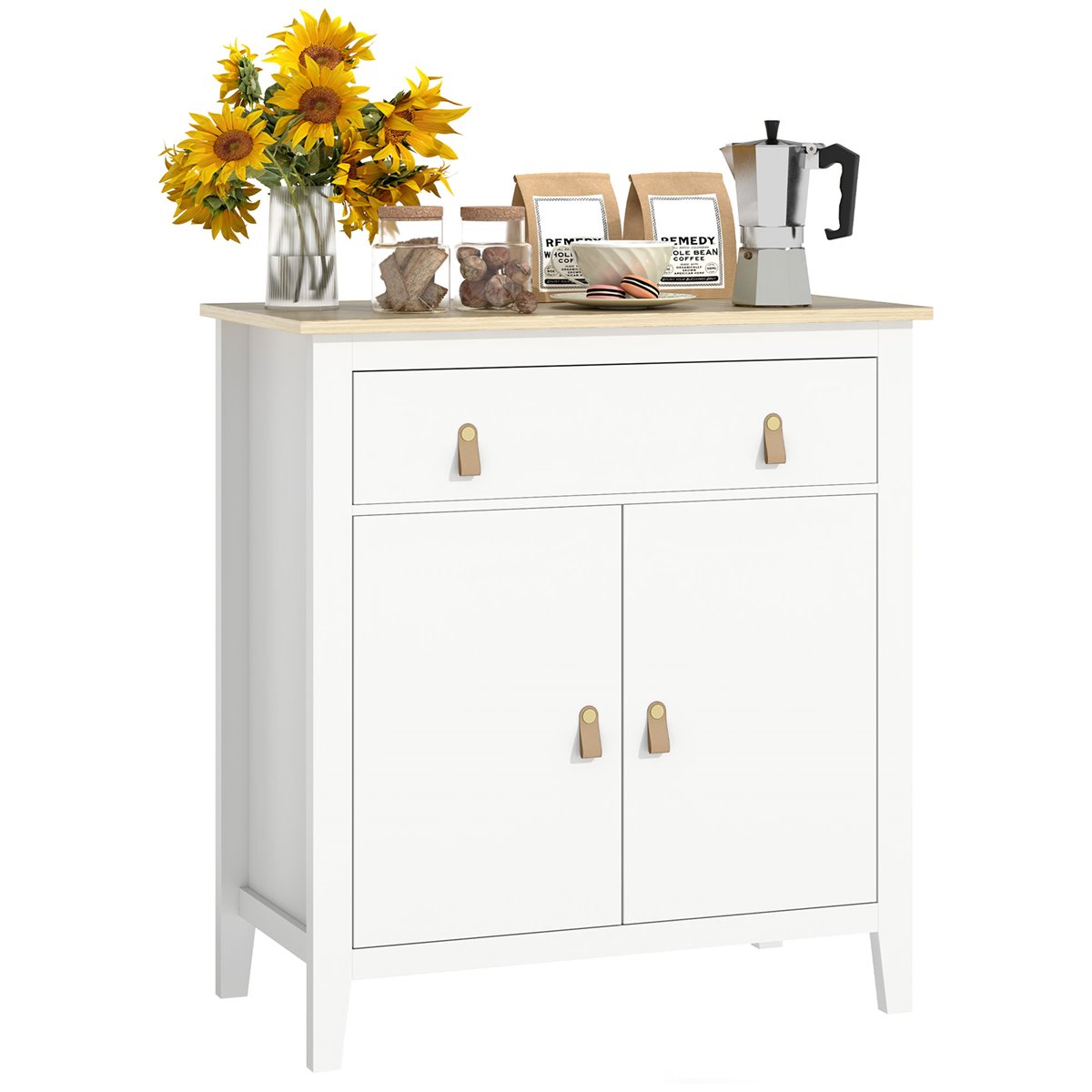 Renove o seu espaço com este aparador HOMCOM, uma solução ideal para manter a organização. Com um gaveta espaçoso e um armário de dois níveis com prateleira ajustável, oferece armazenamento flexível. O acabamento branco com superfície em madeira de carvalho adiciona um toque moderno e elegante, enquanto o gavão de abertura silenciosa melhora a praticidade e o conforto no uso diário. Perfeito para a cozinha, sala de jantar ou sala de estar, este móvel combina funcionalidade e estilo Características: - Aparador com gavão, armário de dois níveis e uma ampla superfície para armazenamento prático - Móvel de sala com prateleira ajustável para organizar diferentes tipos de objetos com facilidade - Inclui guias deslizantes silenciosas para um uso confortável e sem ruídos - Ideal para a cozinha, sala de jantar ou sala de estar - Fabricado em melamina de madeira resistente e inclui dispositivo anti-tombo para maior segurança - 13 cm de altura na base para facilitar a limpeza com aspiradores robots - Requer montagem Especificaciones: - Cor: Branco, carvalho - Material: Melamina de madeira - Medidas totais: 80x40x90 cm (CxLxA) - Medidas interiores do gaveta: 63x28,5x10,3 cm (CxLxA) - Medidas interiores do armário: 66,5x34,5x49,5 cm (CxLxA) - Altura da base ao chão: 13 cm - Carga máxima: 41 kg (total), 15 kg (superfície), 8 kg (prateleira ajustável), 6 kg (gaveta) - Referência: 83B-310V00WT O pacote inclui: - ● 1 x Aparador; ● 1 x Manual de instruções.