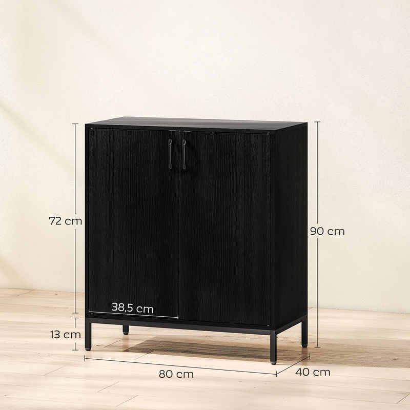 Sente que a sua sala está desorganizada e não reflete o seu estilo? É frustrante não ter espaço para os seus livros, louças ou decoração favorita. Este aparador de cozinha da HOMCOM ajuda a recuperar a harmonia em casa. O seu design moderno e discreto esconde um amplo espaço de armazenamento com prateleira ajustável, ideal para se adaptar às suas necessidades. Transforme qualquer canto num espaço organizado, prático e com estilo Características: - Este aparador para sala de dois níveis oferece um amplo espaço de armazenamento para manter os seus objetos organizados e fora de vista, ideal para manter a casa limpa e arrumada - Possui uma prateleira interior ajustável em cinco níveis, o que lhe permite personalizar o interior do armário e guardar objetos de diferentes tamanhos com total conforto - O móvel de armazenamento destaca-se pelo seu design versátil e atual, perfeito como aparador de cozinha, móvel auxiliar para sala ou armário de entrada, em diferentes ambientes da casa - A sua estrutura combina melamina de madeira e pernas metálicas, oferecendo estabilidade e resistência para um uso diário seguro, suportando até 20 kg no total - Conta com um sistema anti-tombo e pés com niveladores, o que melhora a segurança e a estabilidade até mesmo em pisos irregulares ou com crianças em casa Especificaciones: - Cor: Preto - Material: Melamina de madeira, metal - Medidas totais: 80x40x90 cm (CxLxA) - Medidas internas do armário: 77x34x73 cm (CxLxA) - Altura das pernas: 13 cm - Carga máxima: 20 kg (total), 10 kg (bancada), 5 kg (prateleira) - Referência: 838-576V00BK O pacote inclui: - ● 1 x Aparador; ● 1 x Manual de instruções