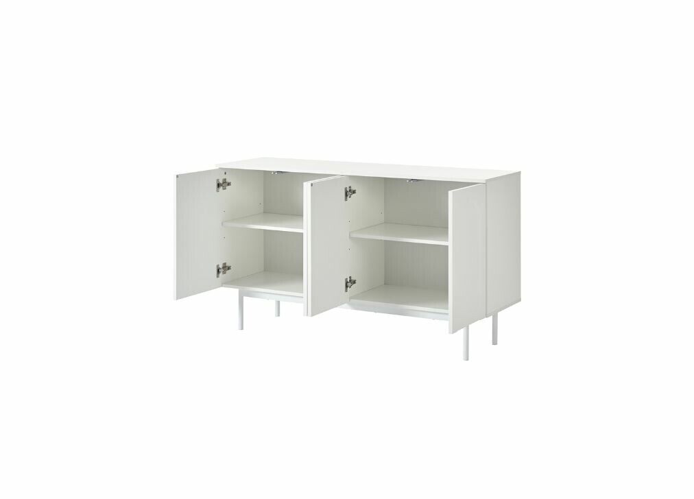 Divisão interna flexível: O aparador está equipado com duas prateleiras ajustáveis que permitem uma divisão interna flexível. Existem três ajustes de altura e também pode remover as prateleiras. Quer pretenda armazenar livros, pratos ou objetos decorativos, as prateleiras oferecem essa possibilidade. O aparador oferece espaço suficiente para todos os seus utensílios e garante que tudo se mantém organizado e de fácil acesso.