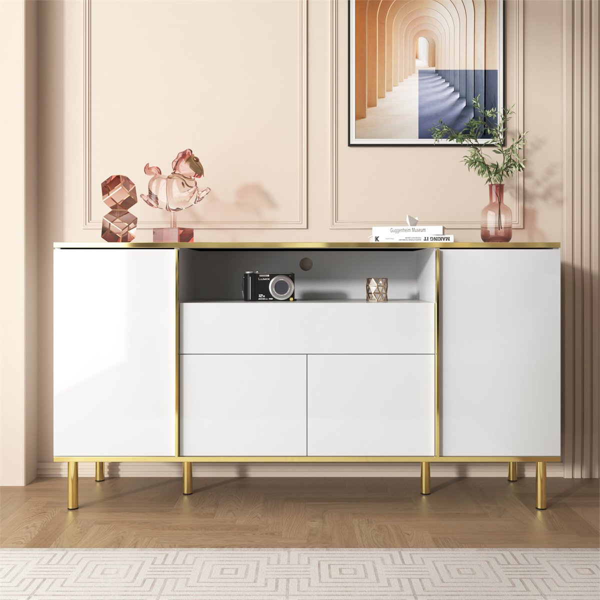 Aparador moderno e luxuoso em branco com iluminação LED e detalhes em dourado brilhante, YIRELL WHITE