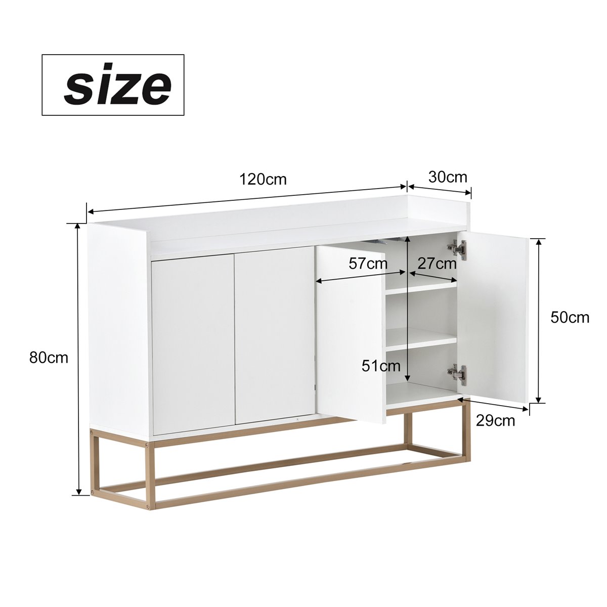 Este aparador moderno em estilo minimalista combina linhas limpas, design sem puxadores e uma estrutura elegante em metal dourado, trazendo sofisticação e harmonia a qualquer ambiente. Perfeito para a sala de estar, sala de jantar ou entrada, é uma peça funcional e decorativa que nunca sai de moda.