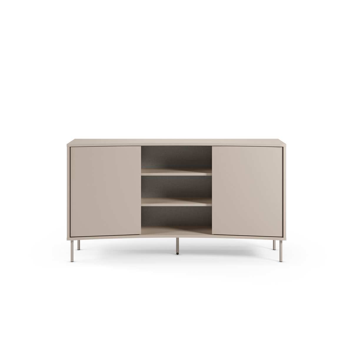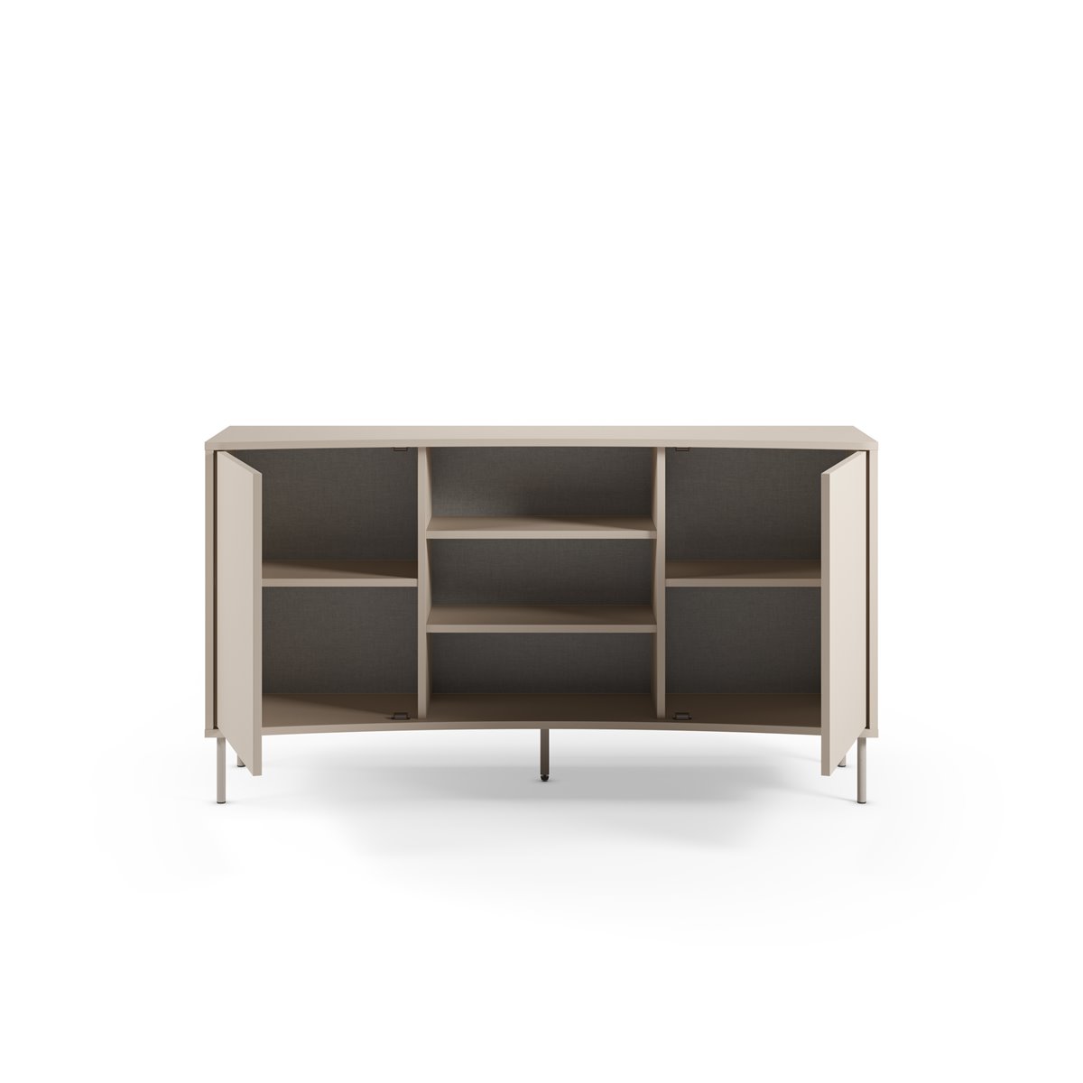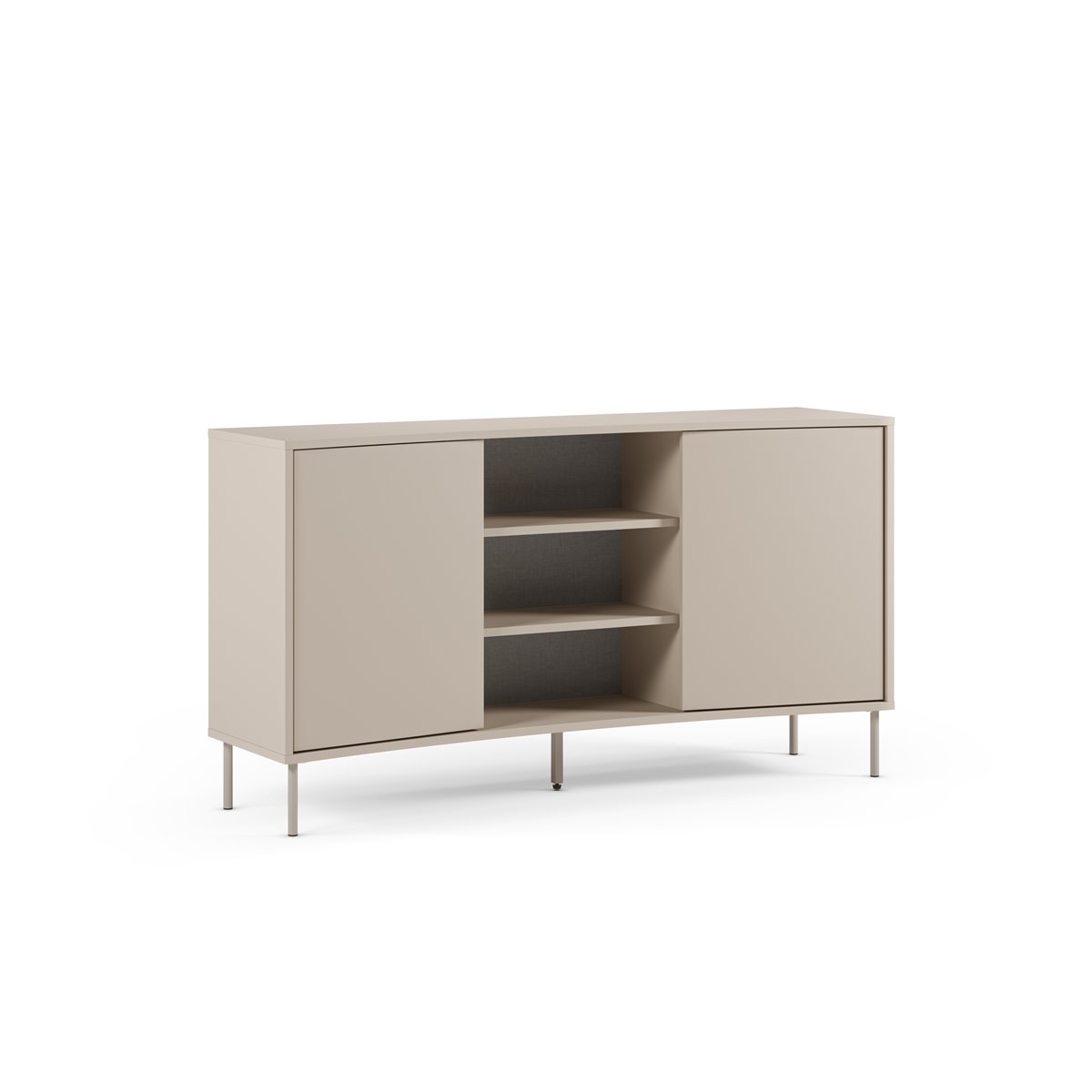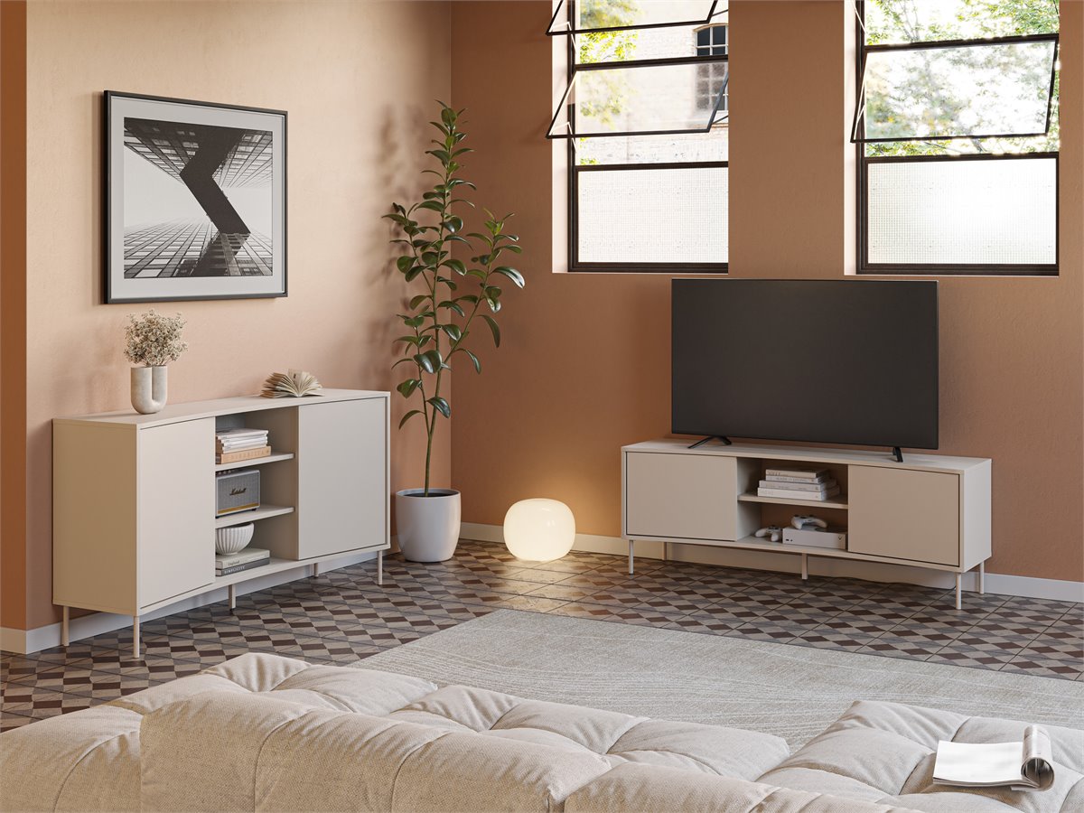 Descubra toda a elegância do aparador NOVA: design moderno, com 2 portas curvas na cor creme, ideal para qualquer tipo de divisão. Fabricado em melamina resistente, combina estilo e durabilidade. Equipado com fechos magnéticos para maior simplicidade. Acabamento impecável. As medidas de 150 cm de largura x 81,3 cm de altura x 40 cm de profundidade tornam-no perfeito para arrumar com muito estilo. Organize a sua casa com design e funcionalidade!