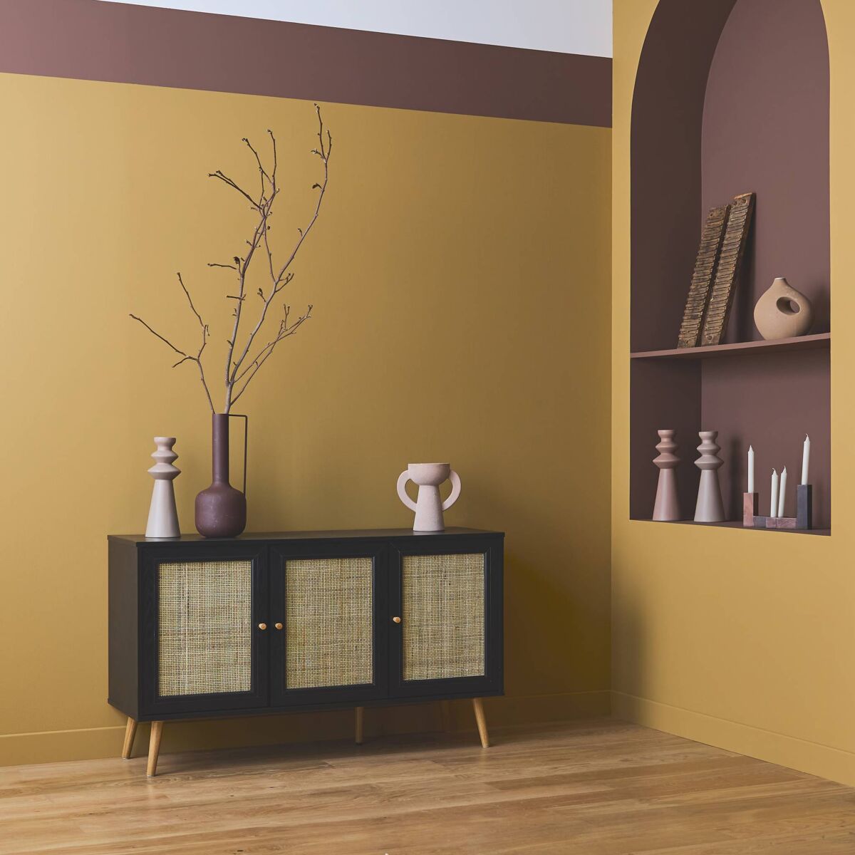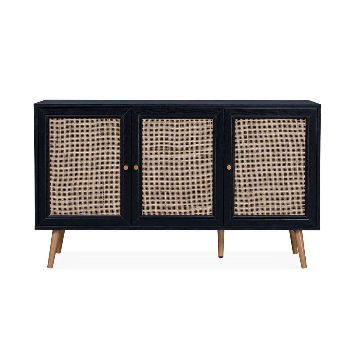 Dê um toque de natureza à sua casa com este aparador de arrumação boémio. Combinando o charme da decoração em vime e madeira, é elegante e autêntico. As suas pernas de bússola escandinavas dão-lhe um toque vintage.