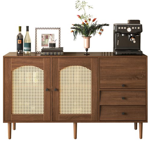 - Estilo campestre natural: portas de vime e designs irregulares criam uma atmosfera elegante e acolhedora em qualquer sala de estar.