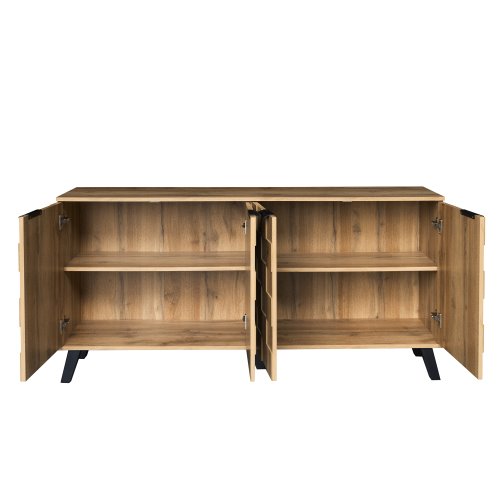 - DESIGN ELEGANTE: Portas com padrões geométricos texturizados, complementadas por maçanetas de metal preto e pés de secretária pretos, criam uma estética moderna adequada a vários estilos de casa.
