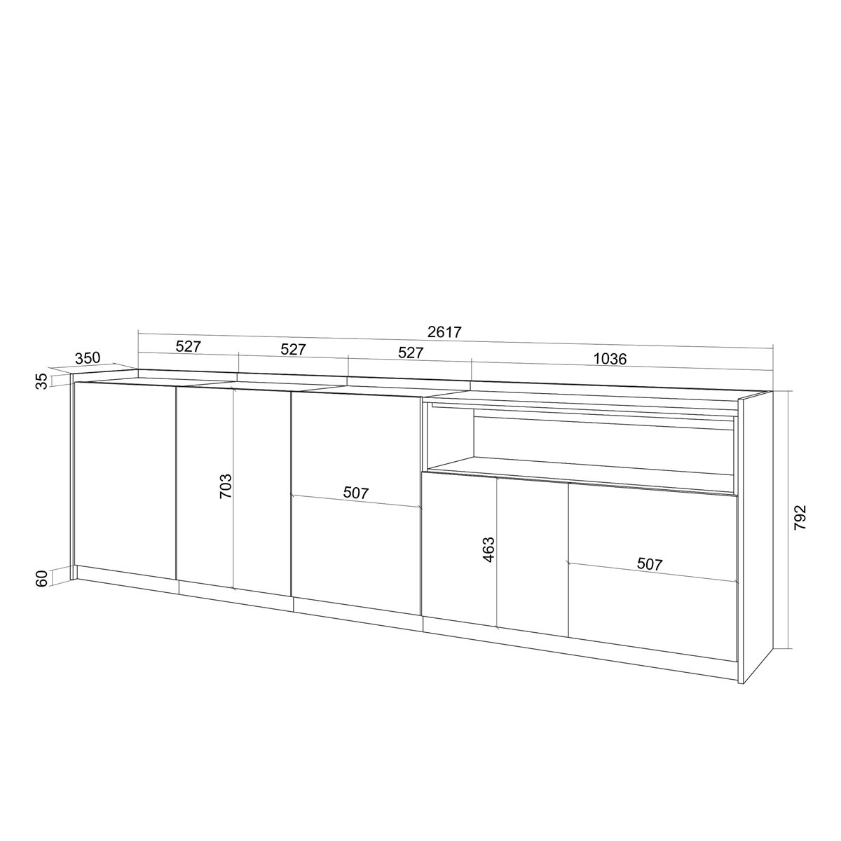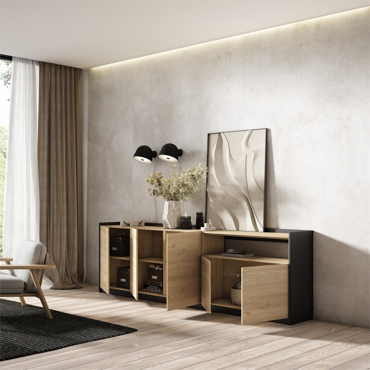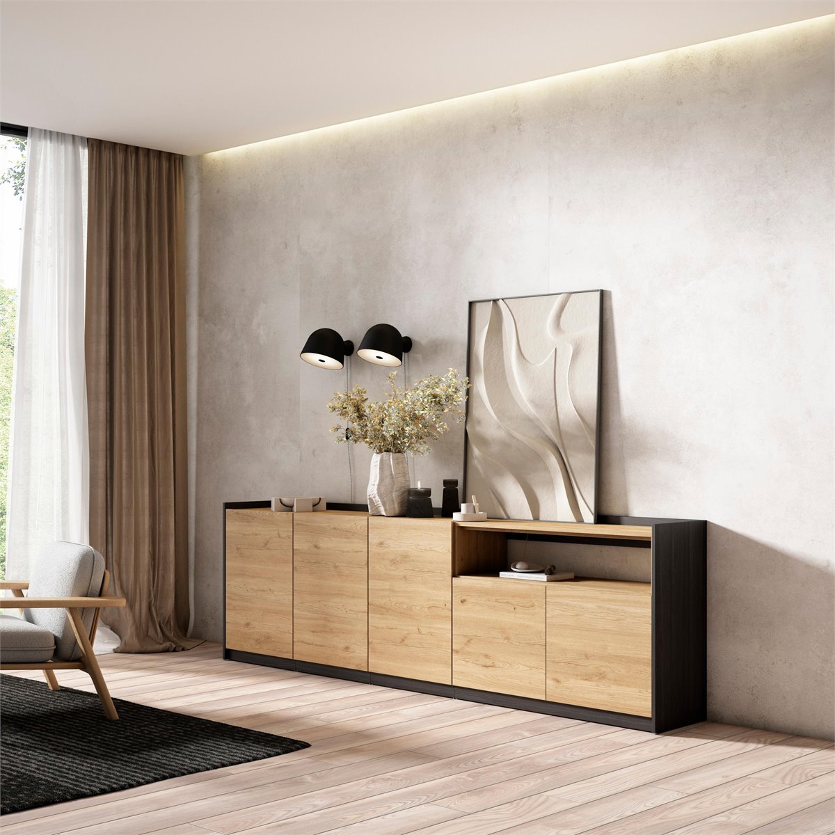Aparador sala de jantar, 260x80x37 cm, 5 Portas, Armário arrumação, Carvalho e preto