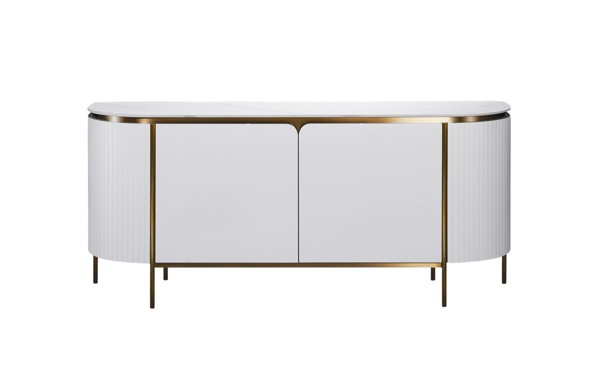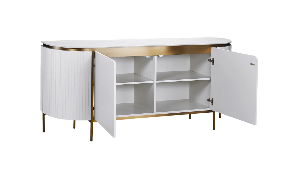 Apresentamos o aparador Stilig com um acabamento branco imaculado, perfeito para dar um toque de sofisticação a qualquer divisão. Este aparador de estilo glamoroso é fabricado a partir de uma combinação de madeira de engenharia, melamina, MDF e aço, oferecendo durabilidade e uma estética elegante. Tem 90 cm de altura, 180 cm de largura e 40 cm de profundidade, com duas portas com dobradiças que proporcionam uma área de arrumação generosa, mantendo um perfil elegante e moderno.