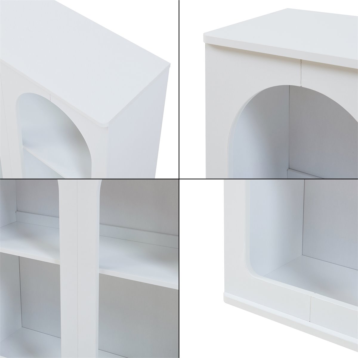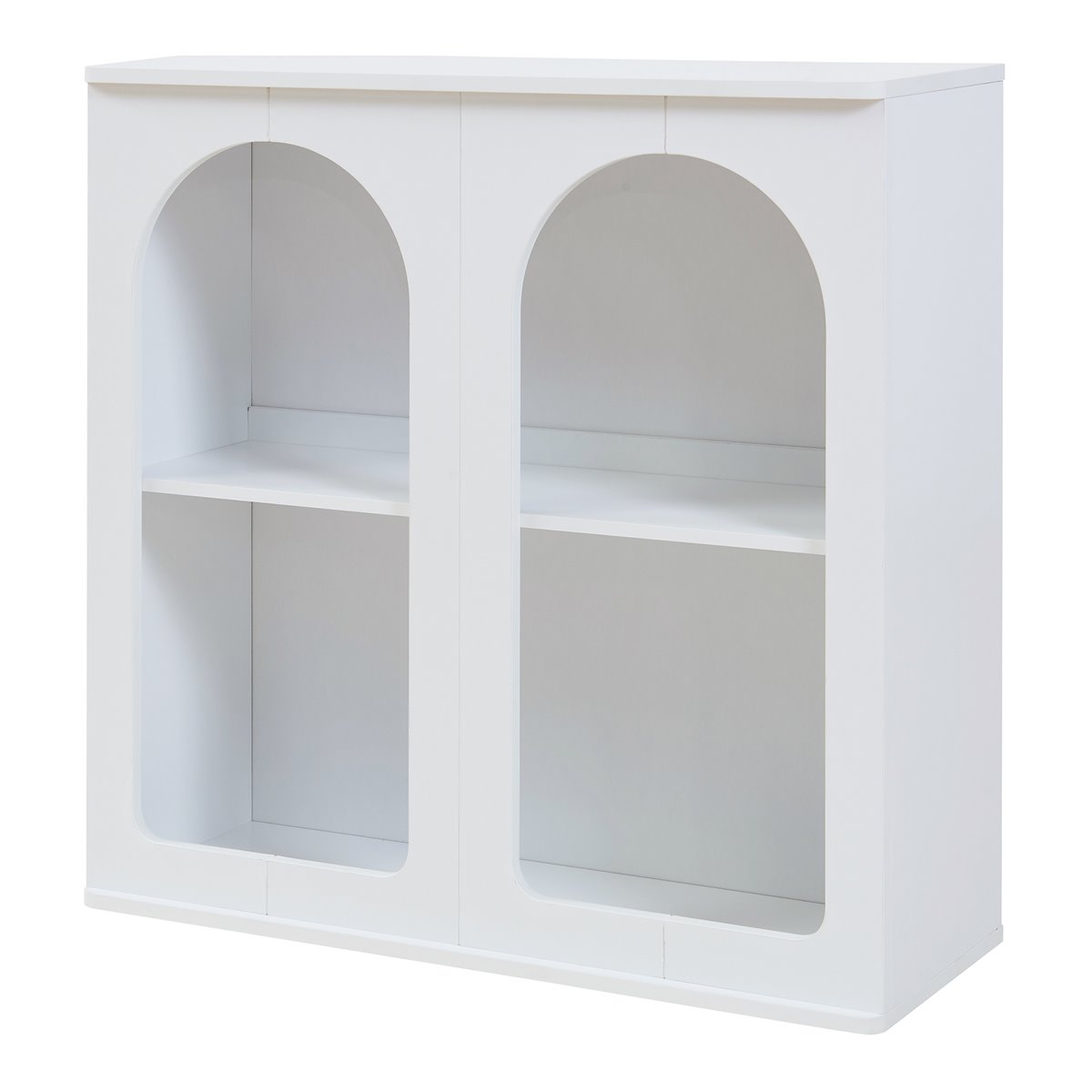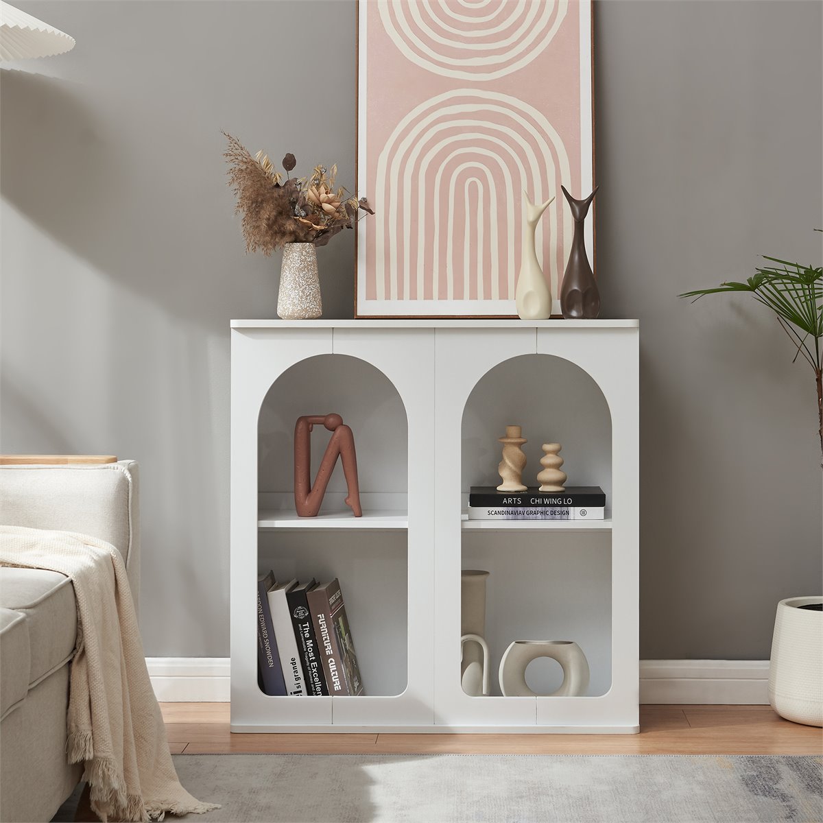 O armário para sala de estar é uma peça de mobiliário elegante e prática que é o complemento perfeito para a sua sala de estar. Não tem portas e, em vez disso, favorece um design aberto e moderno com recortes frontais em arco.