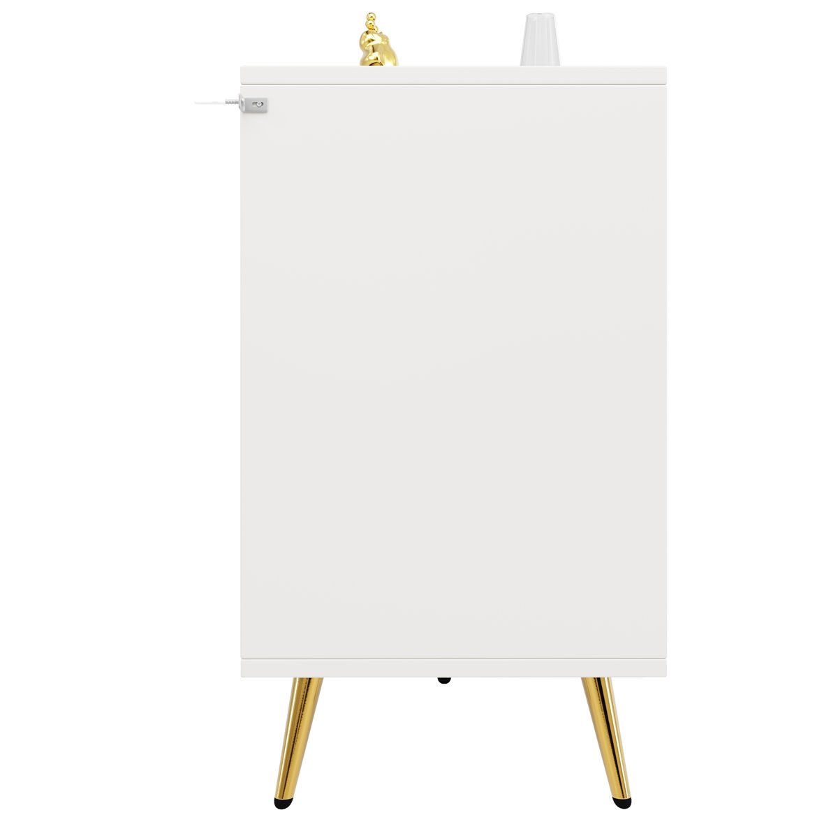 - Estrutura robusta em MDF e metal, com pés metálicos dourados que proporcionam estabilidade e durabilidade.