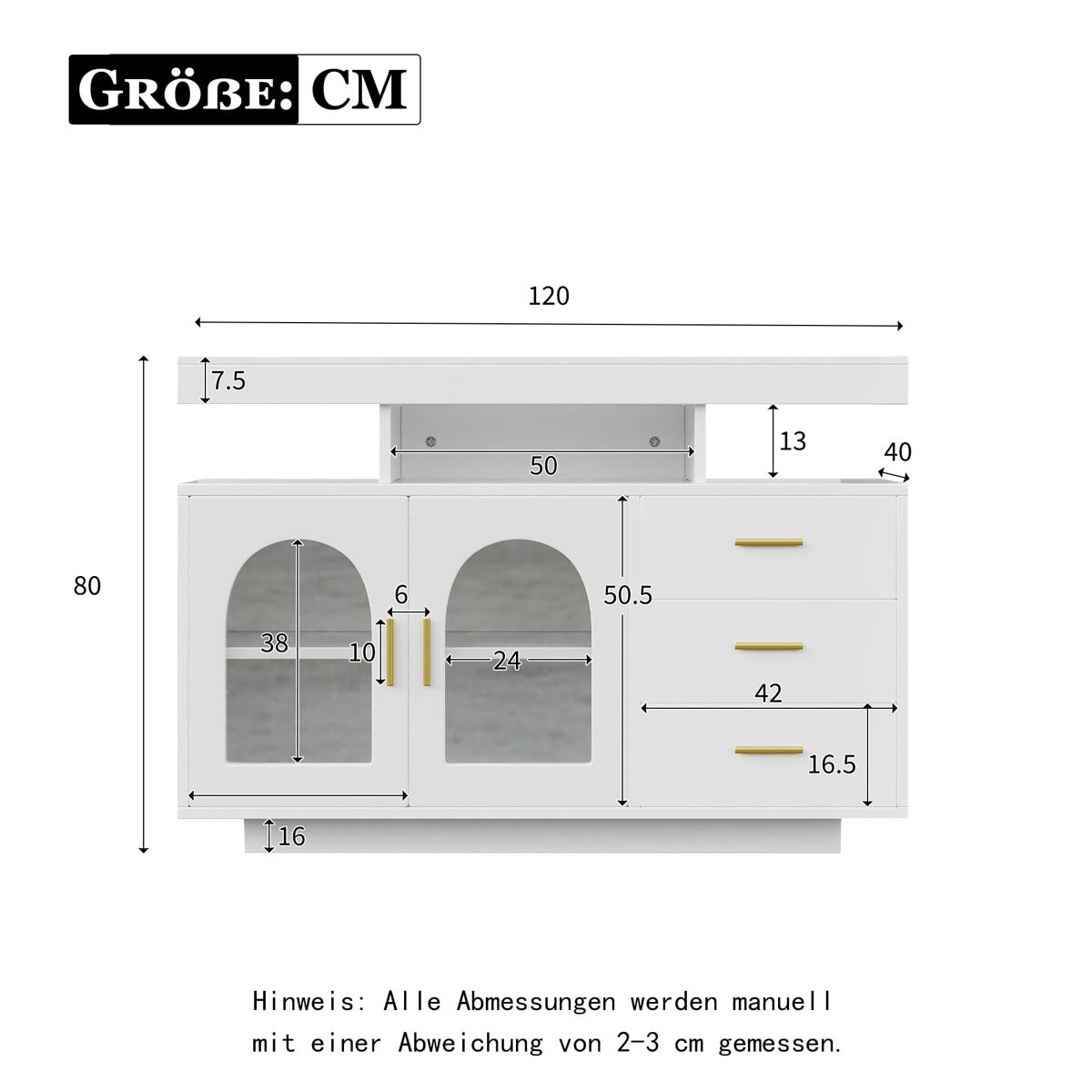 - Três gavetas + duas portas