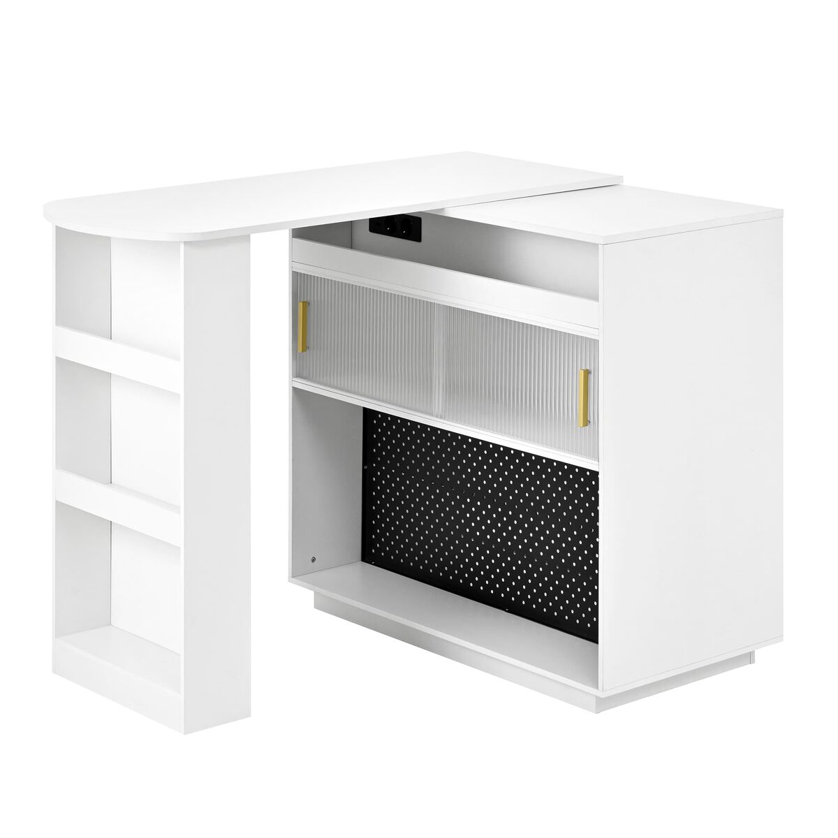- Painel perfurado funcional para organizar pequenos objetos como chaves, cabos ou acessórios