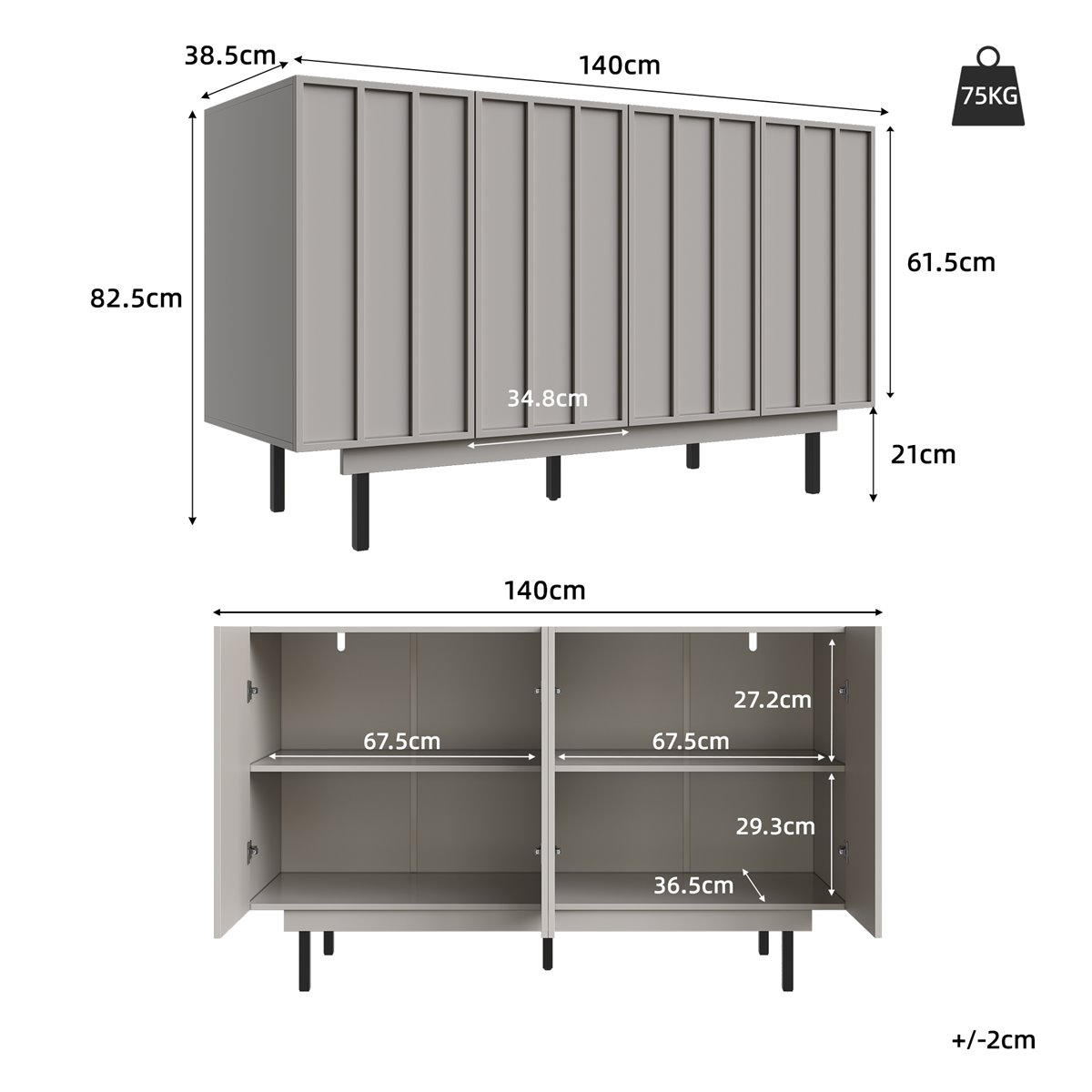 - Armazenamento amplo e prático: equipado com 4 portas, prateleiras ajustáveis e superfícies espaçosas, oferece um amplo espaço de armazenamento para se adaptar a diversas necessidades.