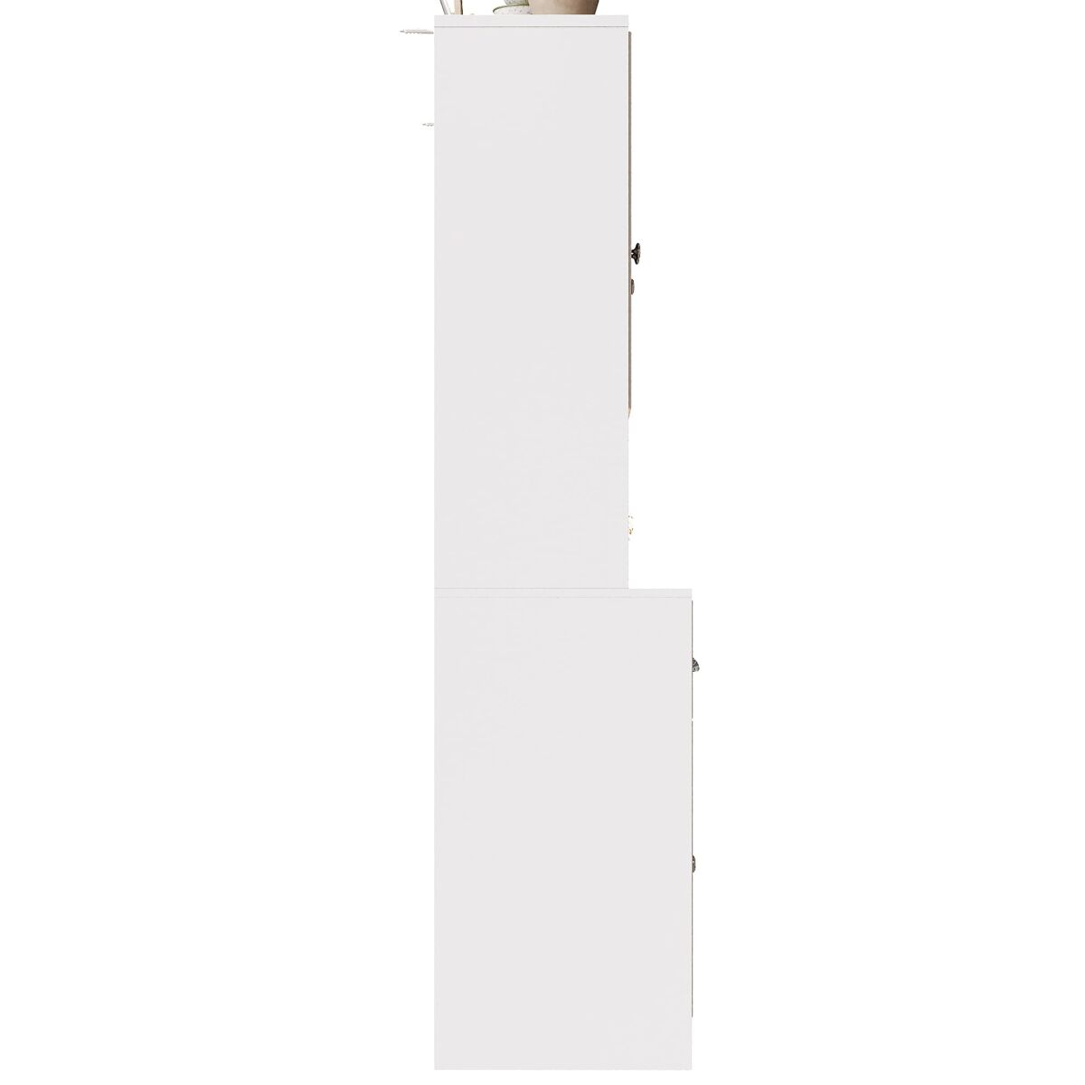 - Três prateleiras ajustáveis para otimizar o armazenamento, além de três gavetas e seis armários com portas.