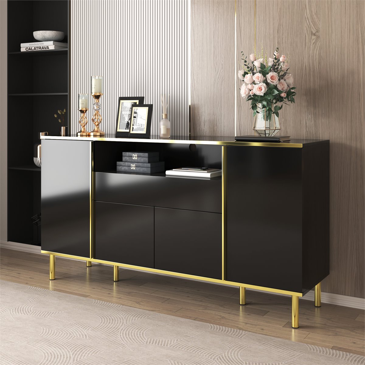 - Combinação perfeita de funcionalidade e estilo com 4 portas, 1 gaveta e um compartimento amplo.