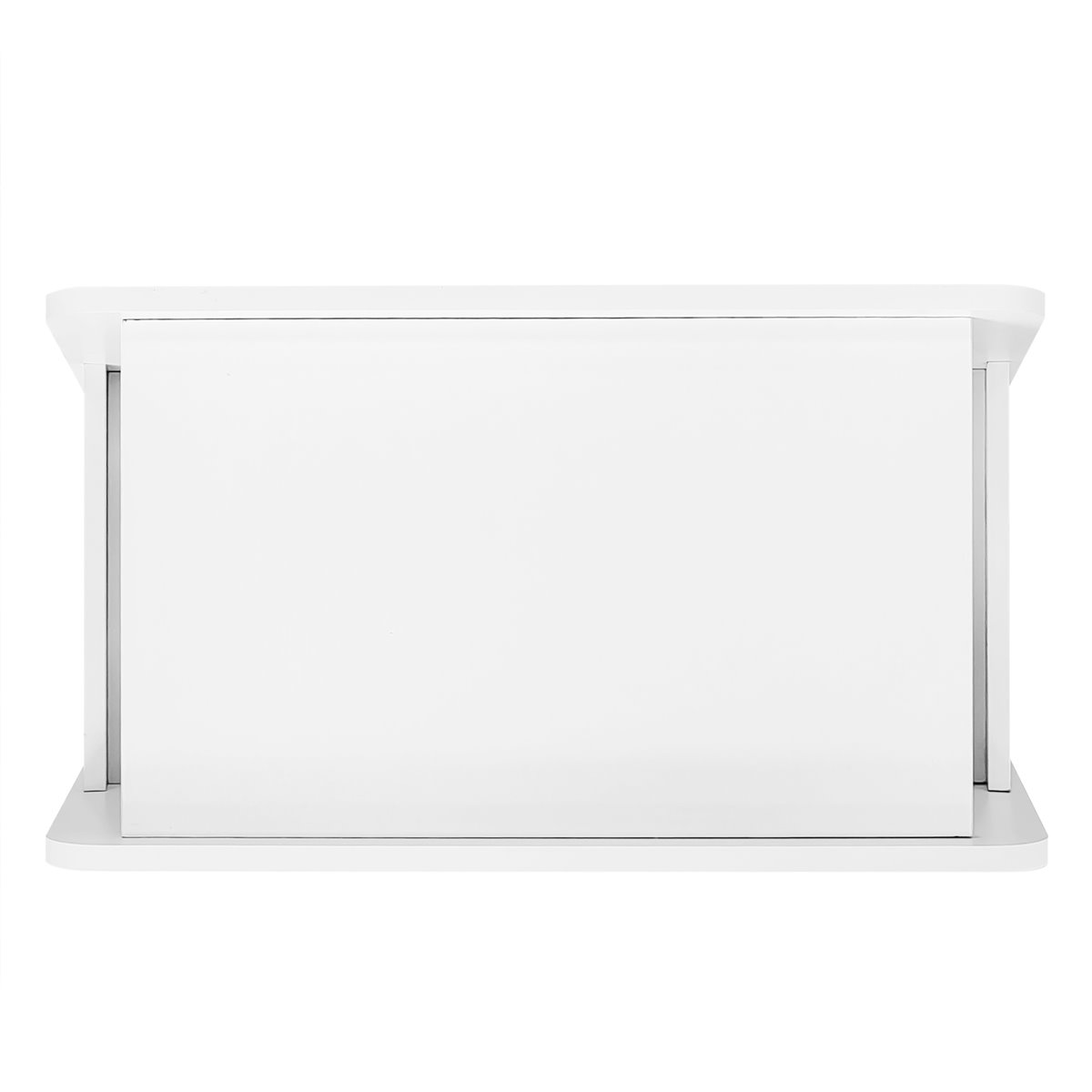 - Mesa auxiliar moderna branca com rodas, design arredondado e seguro, ideal para salas de estar e quartos.