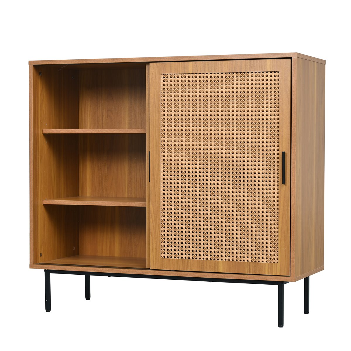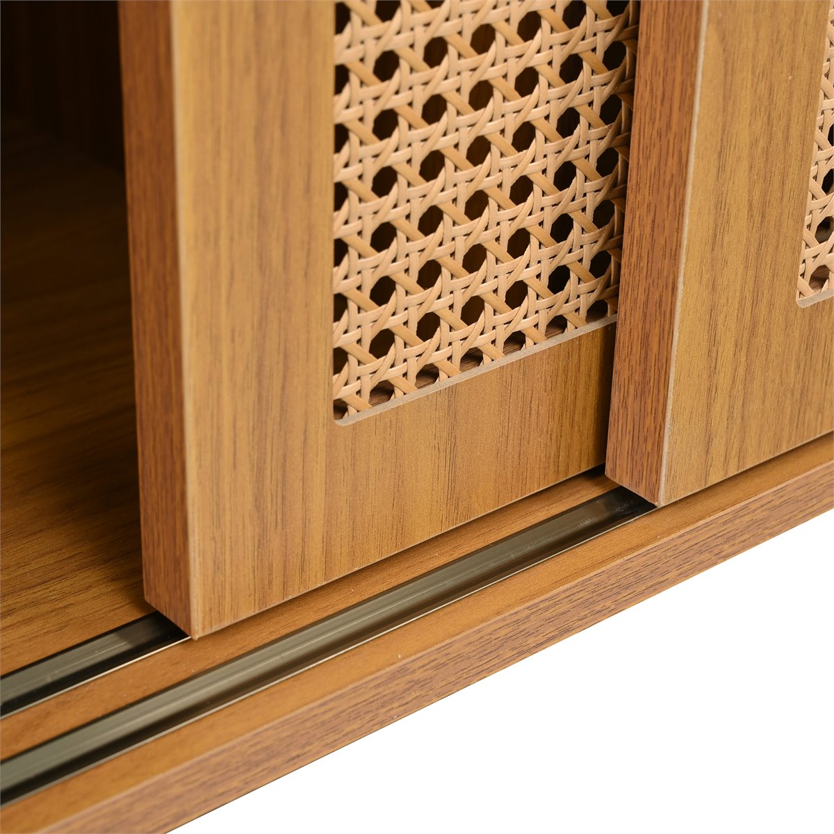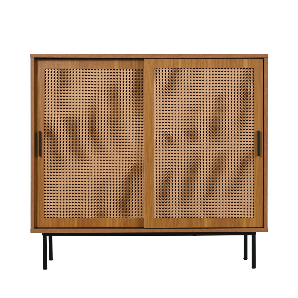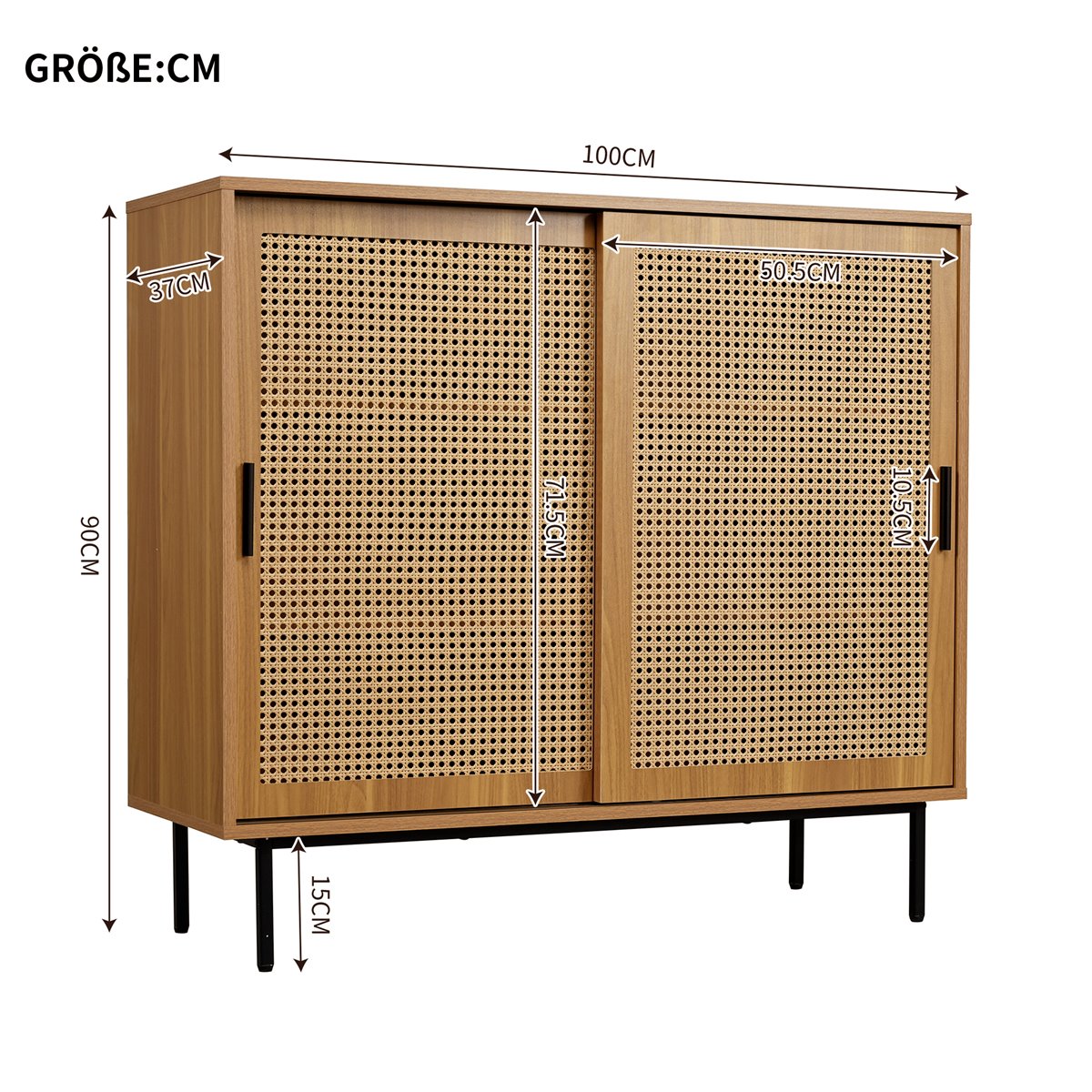 O aparador tem 2 portas amovíveis em rotim e 6 prateleiras. Proporciona um amplo espaço de arrumação para talheres, decorações da sala de estar e outros objectos pessoais.