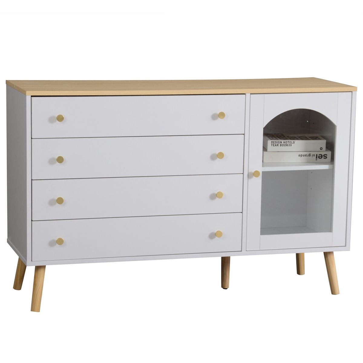 Este elegante móvel de arrumação em cor branca é ideal para vários espaços da sua casa. Com 4 gavetas amplas e uma tampa resistente em madeira, oferece uma grande capacidade de arrumação para objetos de uso diário. O seu design versátil e moderno torna-o a opção perfeita para o quarto, sala de estar, escritório ou mesmo como móvel de entrada. O acabamento de alta qualidade em MDF garante durabilidade, enquanto as bases de madeira garantem estabilidade. Além disso, inclui um sistema de segurança anti-capotamento, o que proporciona tranquilidade às famílias com crianças.