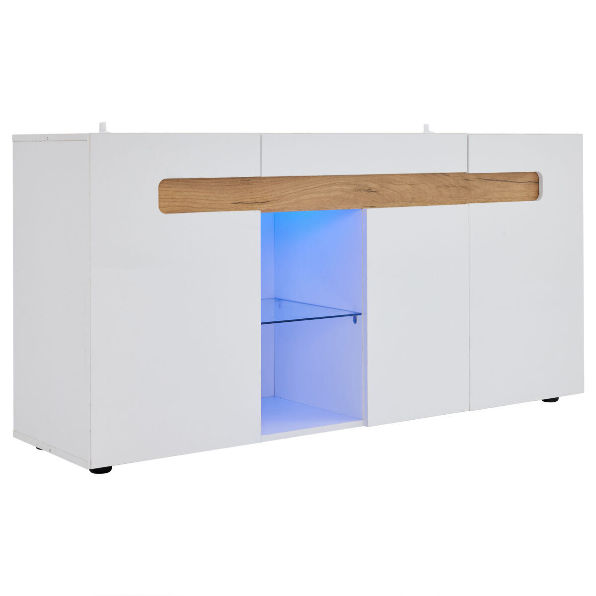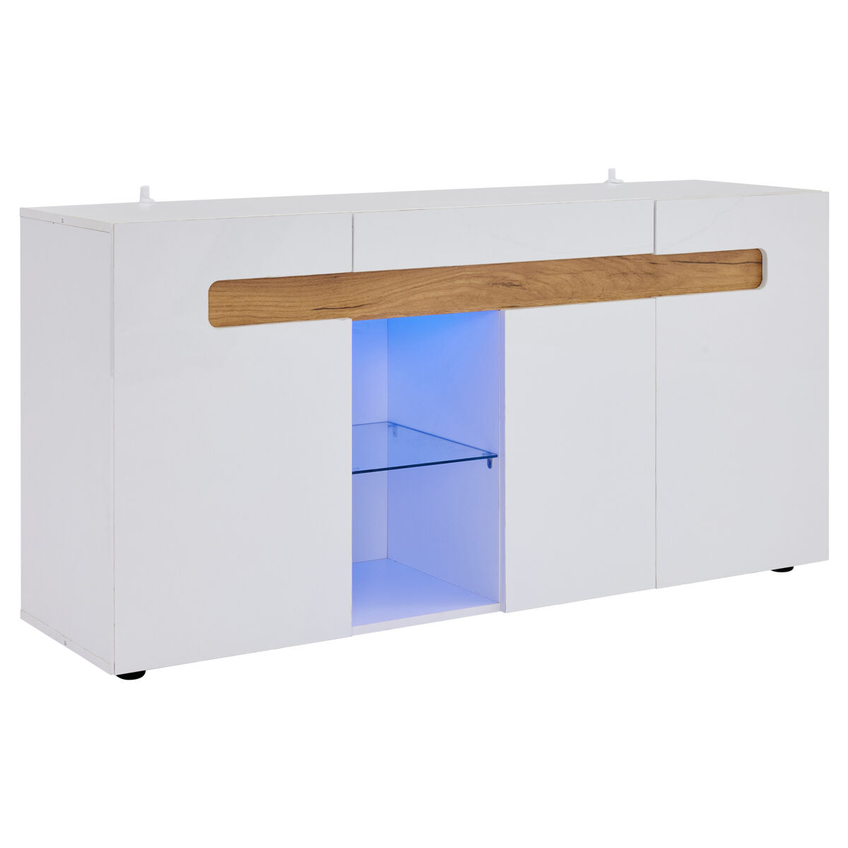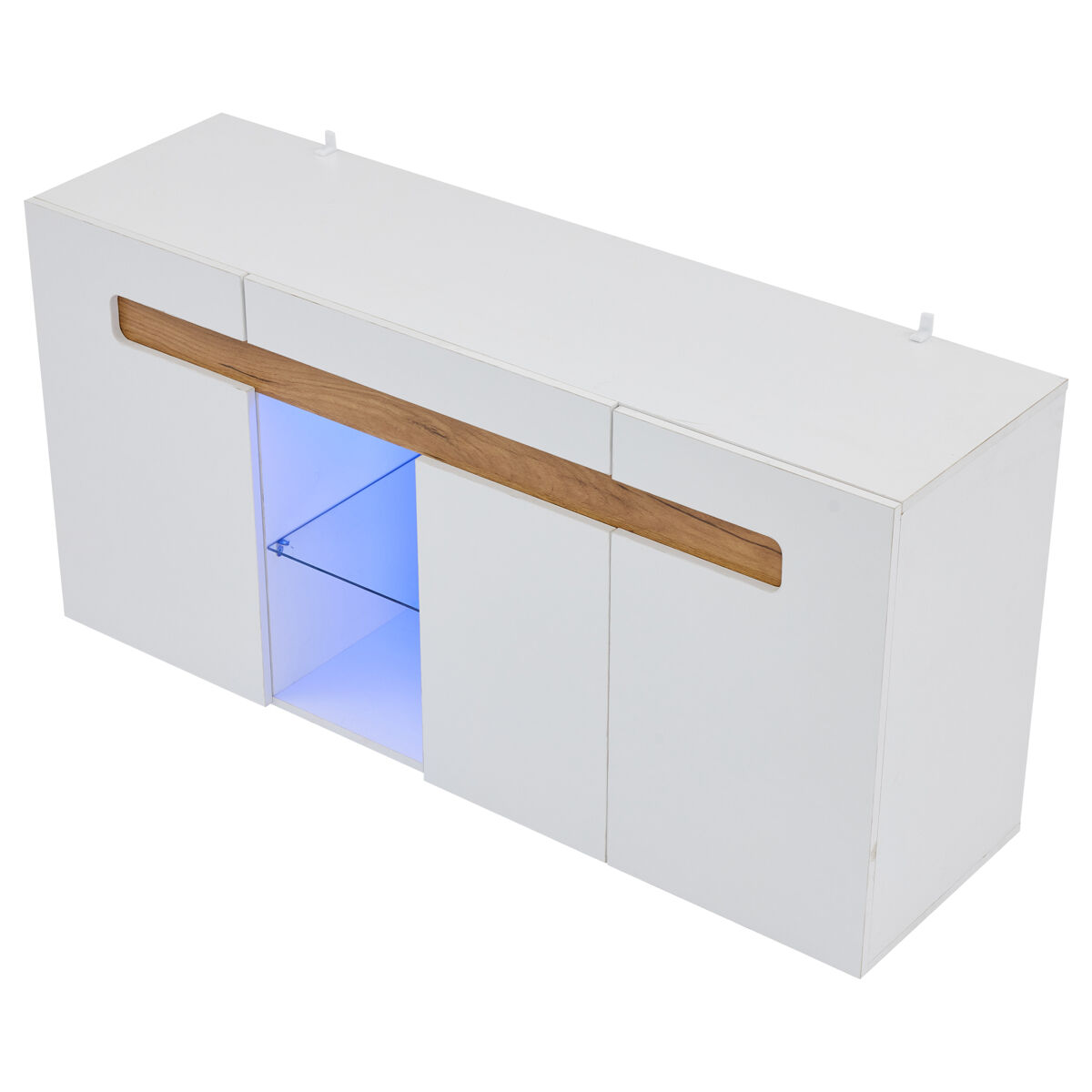 - Móvel auxiliar moderno de 140x40x70 cm com controlo de iluminação LED através de uma aplicação, ideal para a sala de estar ou sala de jantar.