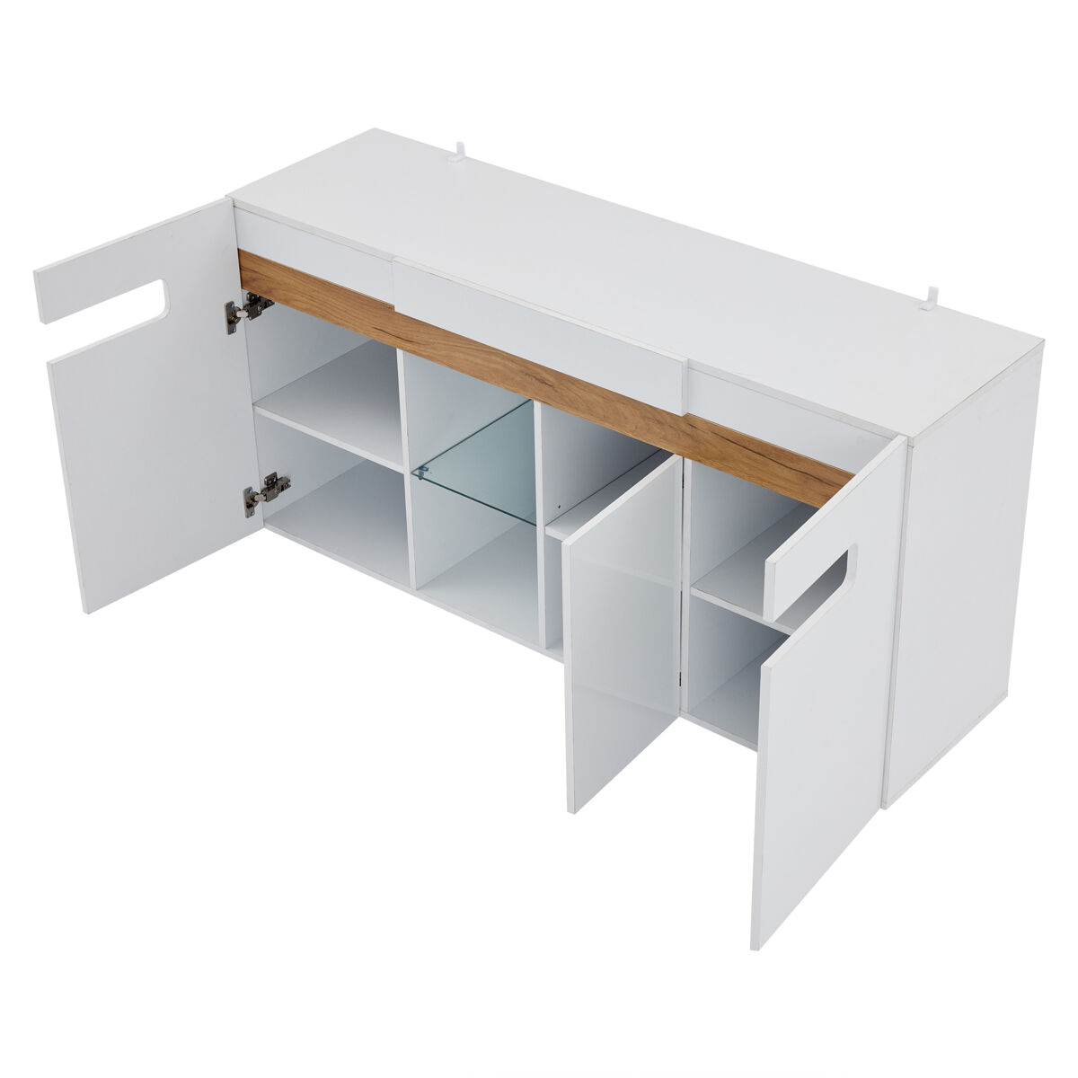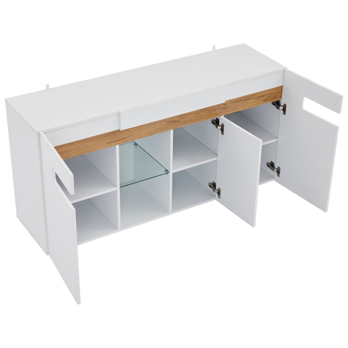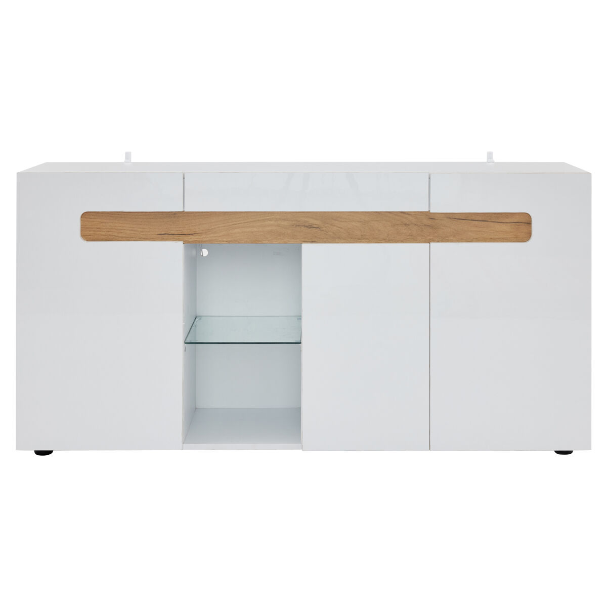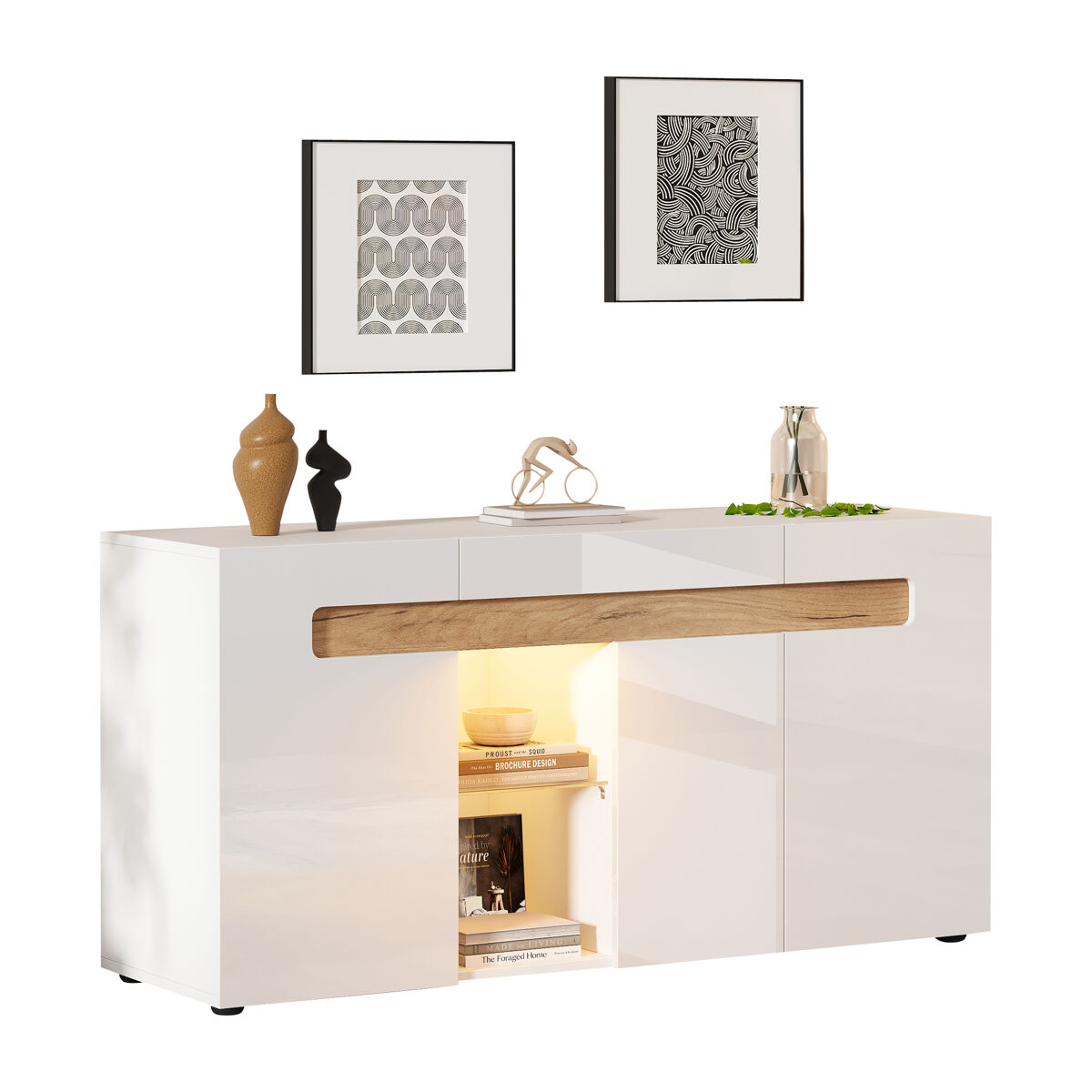 - Móvel auxiliar moderno de 140x40x70 cm com controlo de iluminação LED através de uma aplicação, ideal para a sala de estar ou sala de jantar.