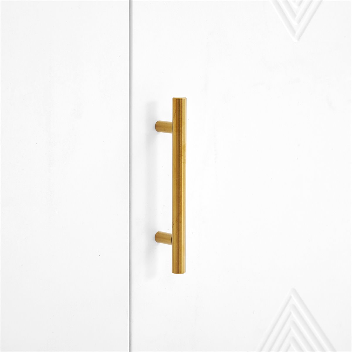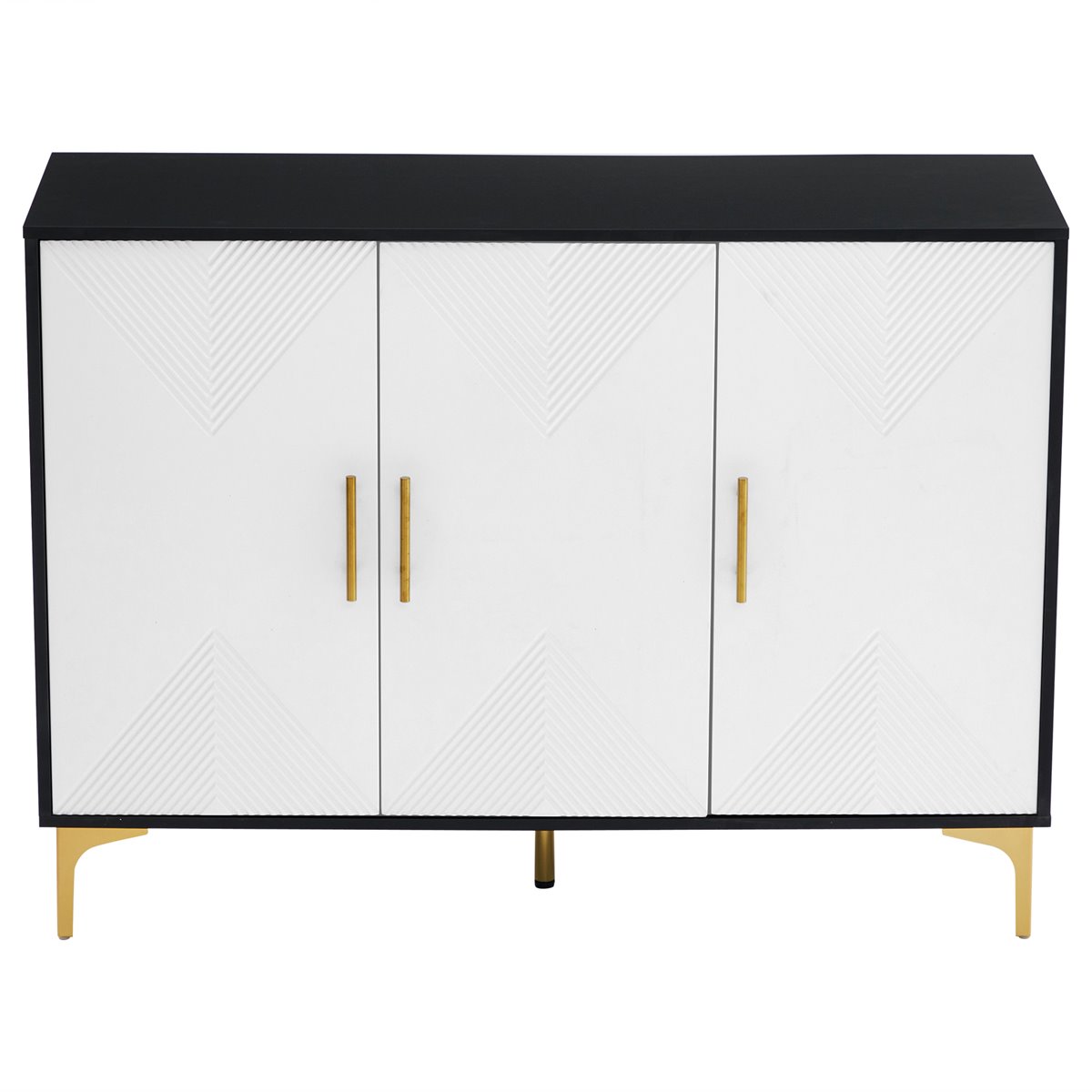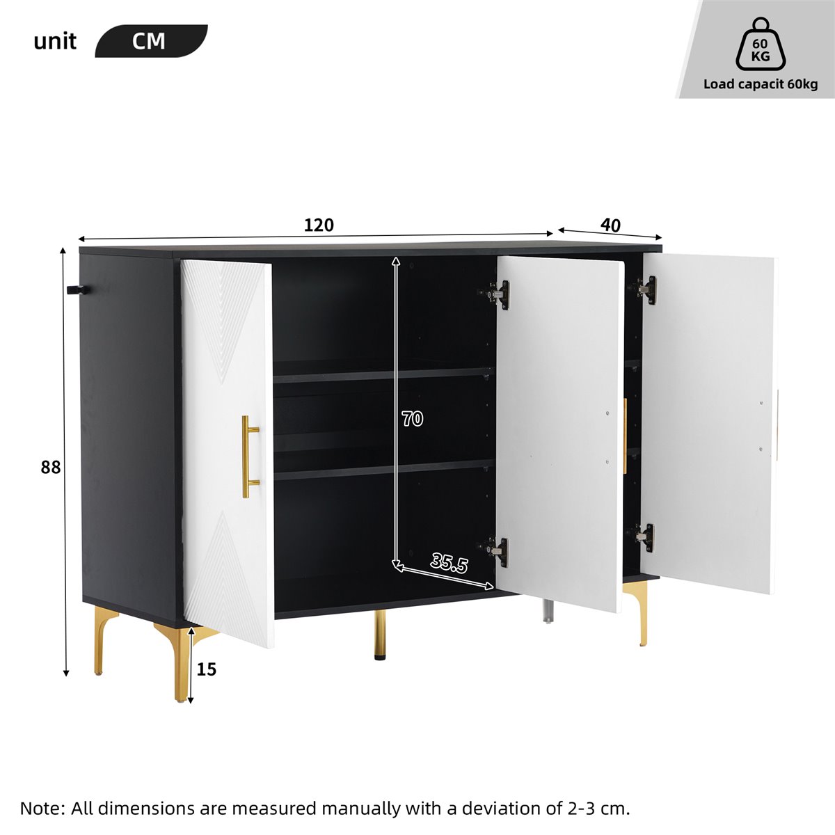 - Cor: Portas brancas, corpo preto, puxadores e pés dourados