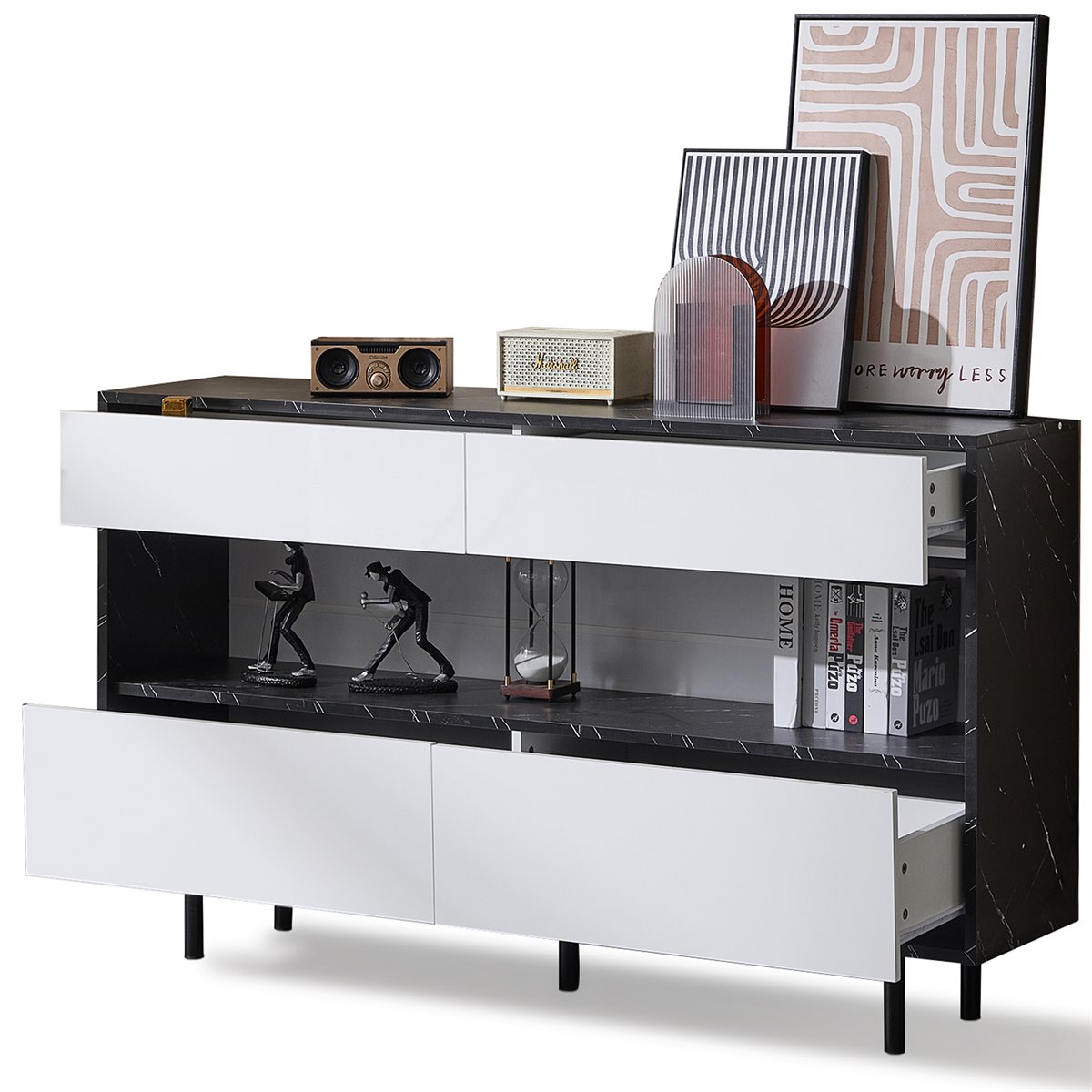 - Aparador elegante com design em mármore preto, ideal para complementar qualquer decoração moderna e estilosa.