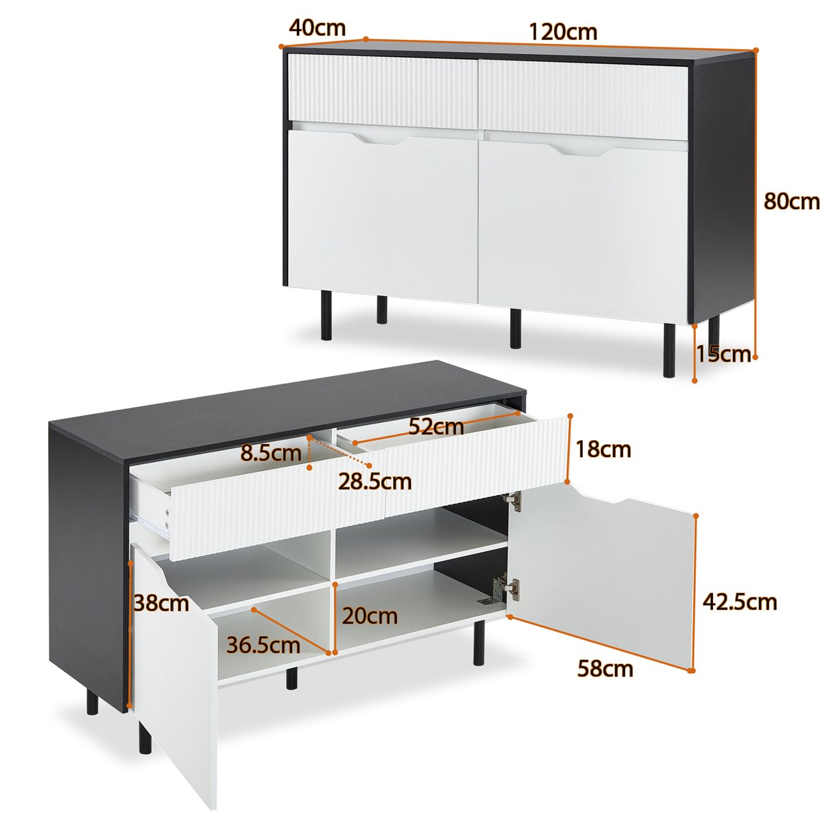 - Elegante armário de arrumação de 120 cm com design em preto e branco, ideal para cozinha, sala de jantar e sala de estar.