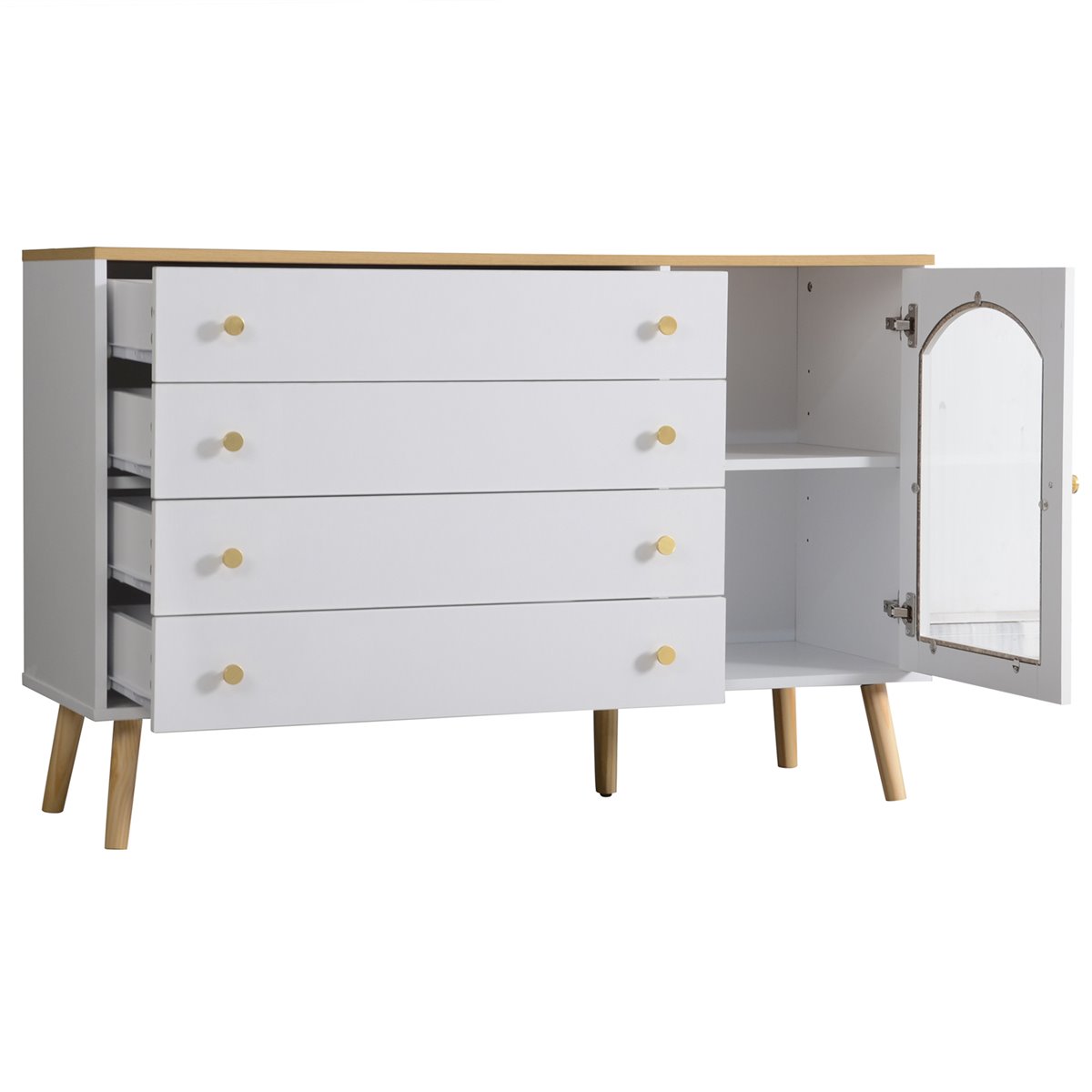 Este elegante móvel de arrumação em cor branca é ideal para vários espaços da sua casa. Com 4 gavetas amplas e uma tampa resistente em madeira, oferece uma grande capacidade de arrumação para objetos de uso diário. O seu design versátil e moderno torna-o a opção perfeita para o quarto, sala de estar, escritório ou mesmo como móvel de entrada. O acabamento de alta qualidade em MDF garante durabilidade, enquanto as bases de madeira garantem estabilidade. Além disso, inclui um sistema de segurança anti-capotamento, o que proporciona tranquilidade às famílias com crianças.