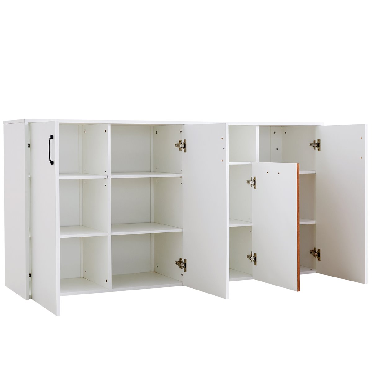 - Grande capacidade de armazenamento e utilização flexível: Com dimensões de 160x40x80 cm (CxLxA), este versátil armário oferece um amplo espaço de armazenamento. As prateleiras ajustáveis em altura permitem uma organização personalizada para pratos, utensílios de cozinha e outros artigos, sendo ideal para a cozinha, a sala de jantar ou a sala de estar.