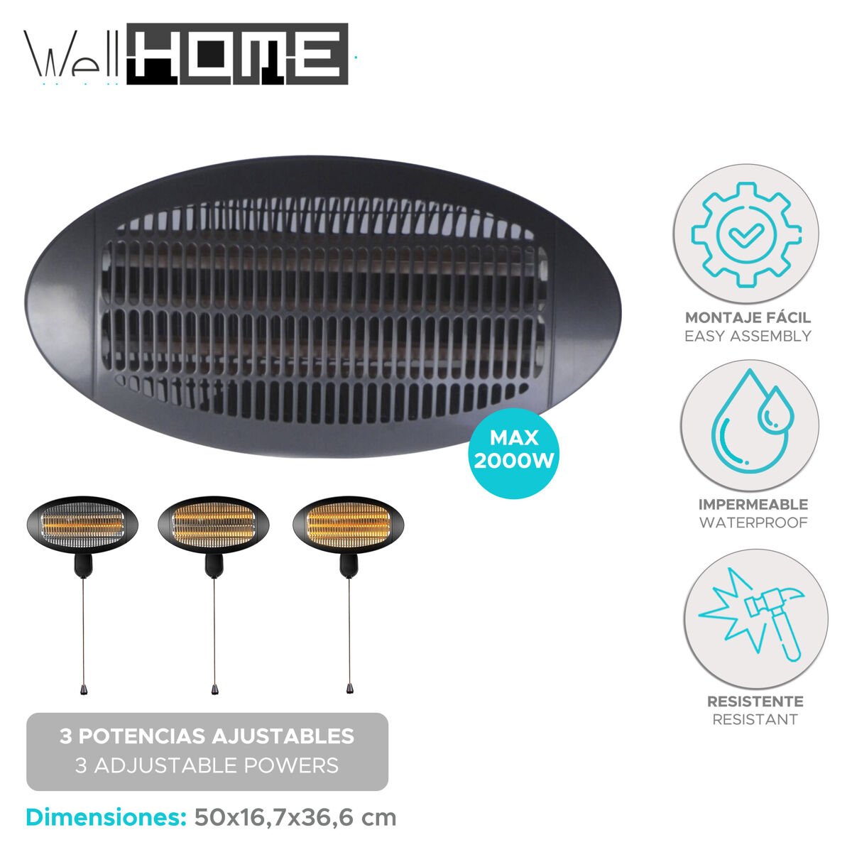 Oferece três potências ajustáveis e é fácil de instalar em qualquer parede.