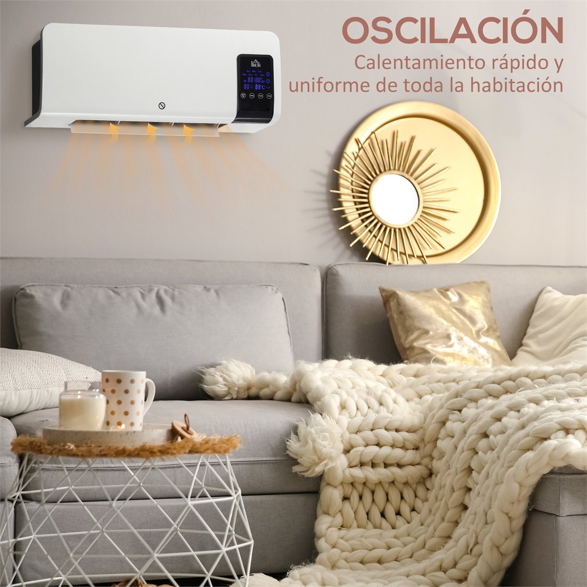 Se você está procurando um aquecedor para seu dormitório, escritório ou qualquer espaço em sua casa esse aquecedor da HOMCOM é uma ótima escolha! Conta com a tecnologia de aquecimento cerámico PTC a qual aquece o ambiente em poucos segundos. O desenho montado na parede é ideal para espaços limitados. A temperatura se pode ajustar entre 18℃-45℃, possui função de temporizador de até 12 horas e controlo remoto. É ideal para aquecer sua casa ou escritório Características: - Aquecedor com desenho montado na parede, adequado para espaços limitados - Possui a função de oscilação que permite a distribuição de ar de maneira uniforme - 2 modos de aquecimento e temperatura ajustável de 18℃-45℃ para se adaptar as suas necessidades - O temporizador te permite configurar o funcionamento do aquecedor de 1 a 12 horas - Ecrã LED e controlo remoto para uma fácil operação - O controlo remoto com bateria CR2025 incluida - Conta com um dispositivo que se desligará automaticamente em caso de superaquecimento - Área de cobertura 15-20m² - Requer montagem Especificaciones: - Cor: Branco - Material: ABS - Medidas totais: 54,5x12x21,5cm - Tamanho da saída de ar: 34x4,5cm - Área de cobertura: 15-20m² - Apresentação: Fixado na parede - Voltagem de entrada: 220-240V/5 Hz - Potência: 1000W/2000W - Temperatura: 18-45 °C - Comprimento do cabo de alimentação: 1,5 m - Bateria: 1x bateria CR2025 (incluída) - Certificações: CE (EMC, LVD, ERP, ROHS), MSDS - Referência: 820-294V90WT O pacote inclui: - ● 1x Aquecedor elétrico de parede; ● 1x Controlo remoto; ● 1x Manual de instruções;