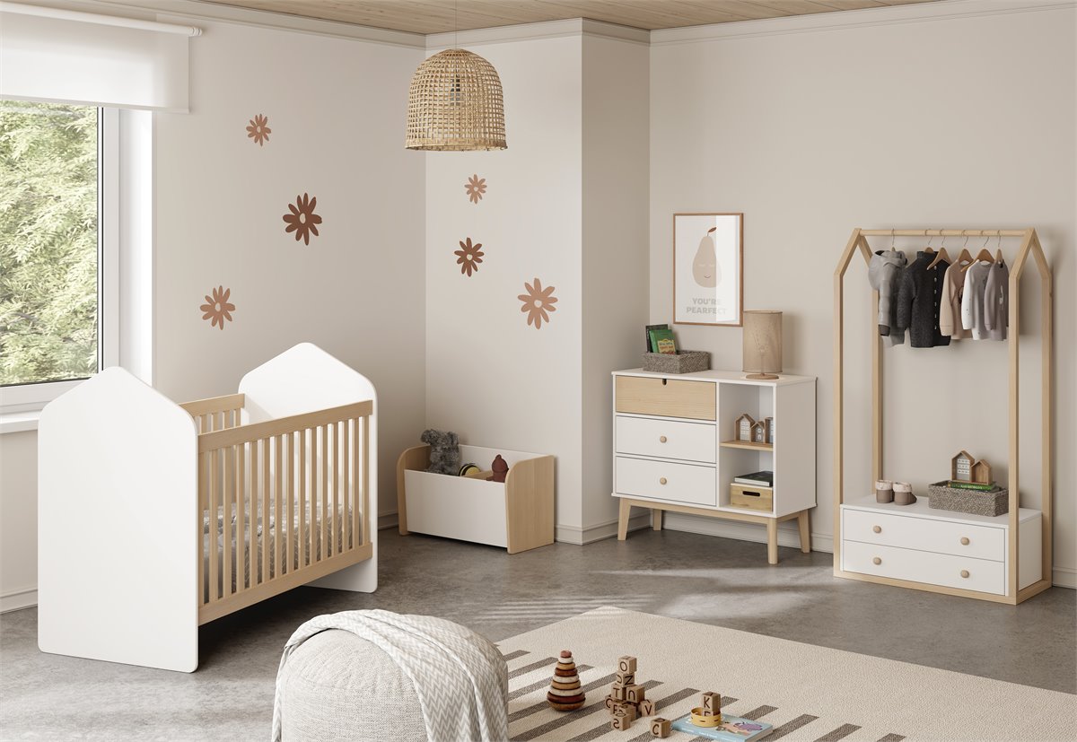A arca SIANNE é um artigo versátil e funcional, concebido para otimizar o armazenamento doméstico com um estilo moderno e elegante. O seu design compacto torna-o ideal para quartos de crianças, salas de estar, corredores ou qualquer espaço que exija arrumação sem comprometer a vertente estética. A arca SIANNE é uma opção que reúne funcionalidade e beleza no mesmo móvel. A arca SIANNE destaca-se pela sua estrutura em MDF (painel de fibras de média densidade) e pinho. O MDF é um material muito utilizado em mobiliário, enquanto o pinho confere um toque aconchegante e natural, garantindo um design que mistura o moderno e o rústico na perfeição.