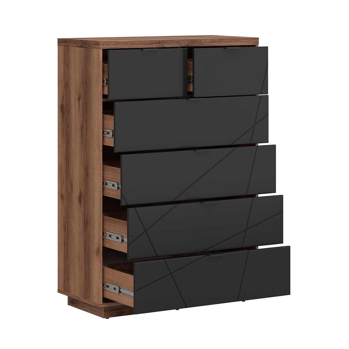 Arca Sven preta e em madeira com 6 gavetas