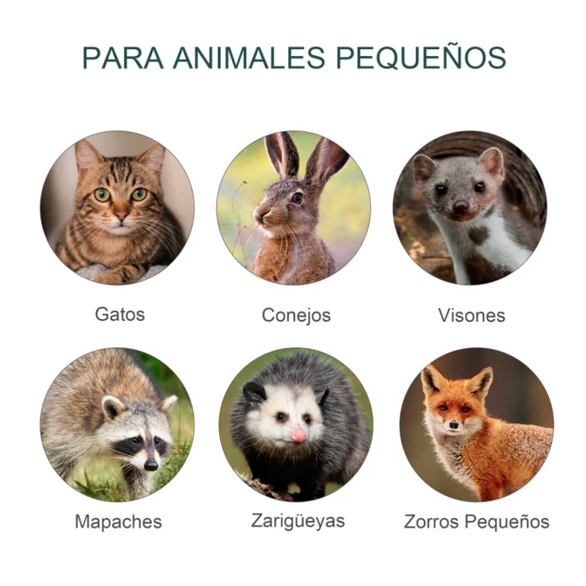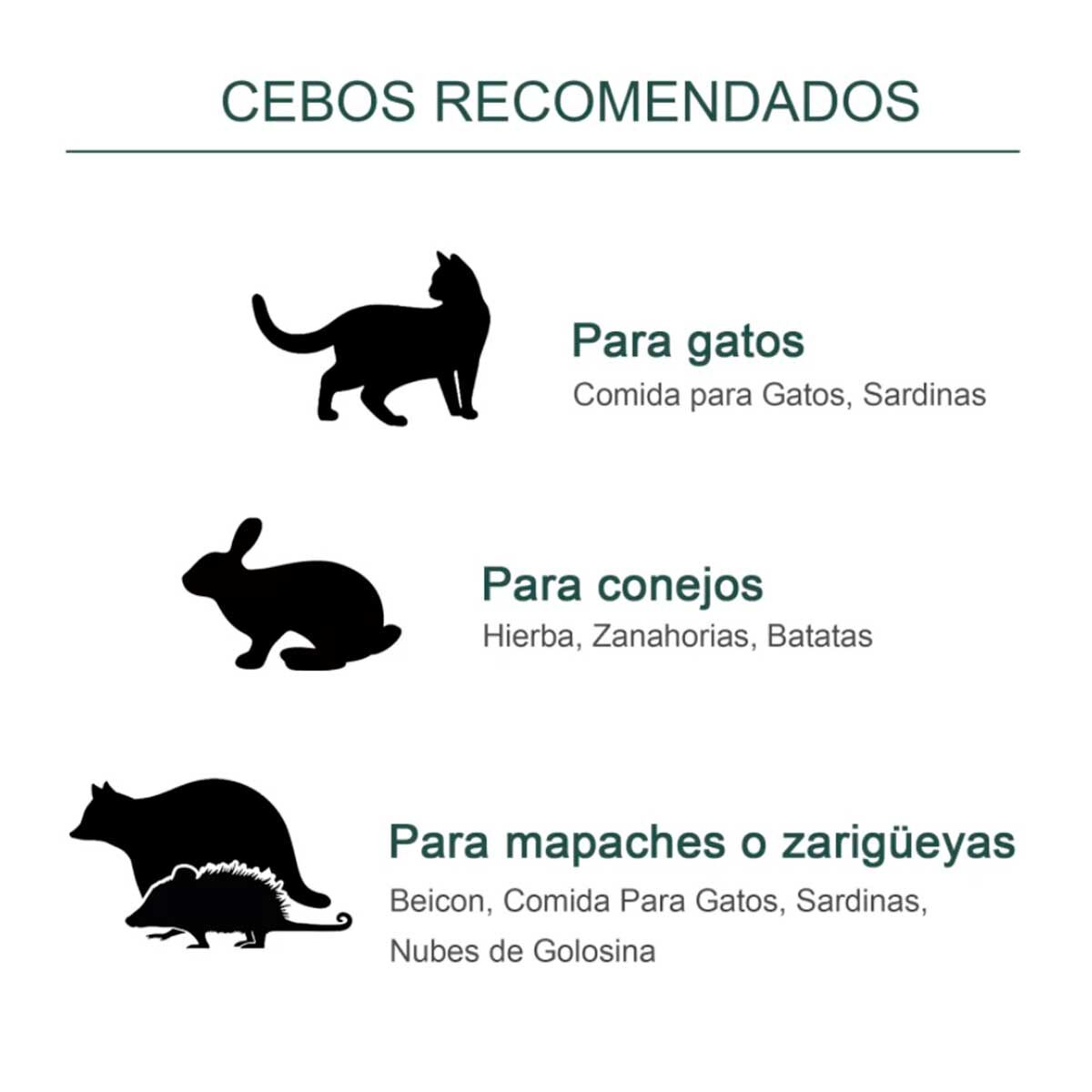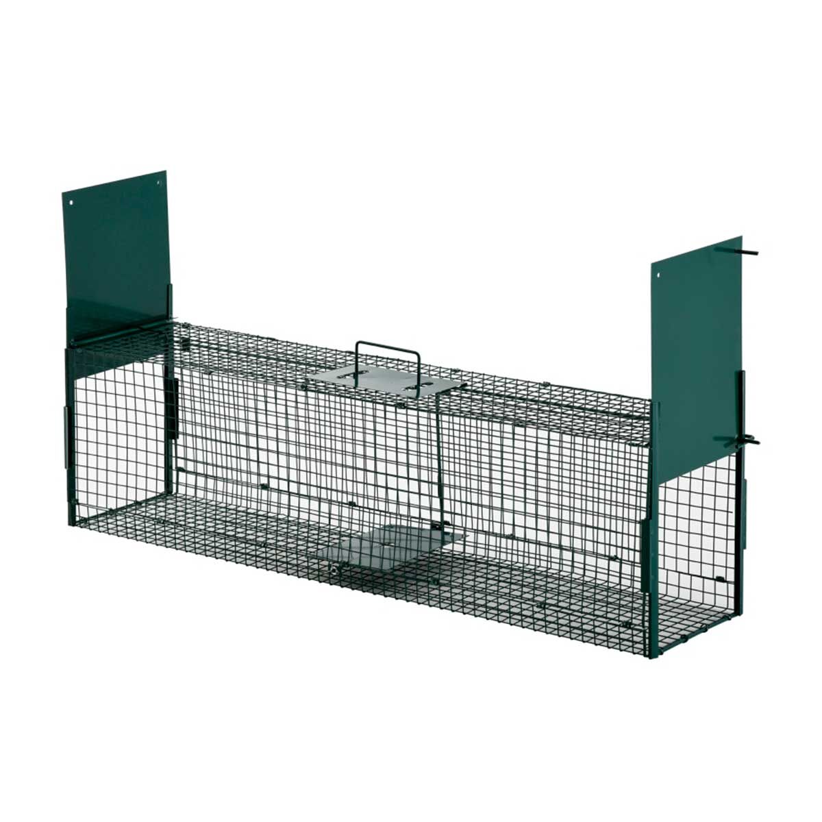 - COM 2 PORTAS: Tem 2 portas em ambas as extremidades, que deslizam para baixo, fechando a gaiola quando o mecanismo de armadilhagem é activado - MANIPULAÇÃO SUPERIOR: Esta gaiola tem uma manivela superior para facilitar a deslocação. Isto significa que mover esta armadilha não é uma tarefa complicada - UTILIZAÇÃO NO INTERIOR E NO EXTERIOR: Utilize esta armadilha tanto no interior como no exterior, de acordo com as suas necessidades. Pode ser colocada em casa, no quintal, na garagem, no jardim, na quinta, na floresta, etc. - CAPTURA DE ANIMAIS VIVOS: Captura pequenos gatos, coelhos, martas, guaxinins ou outros pequenos animais. O seu sistema de alta precisão permite a captura eficaz de animais vivos sem os ferir, garantindo assim a segurança dos seus filhos ou animais de estimação - MEDIDAS TOTAIS: 100x25x28 cm (CxLxA); Dimensões da entrada: 23x21 cm (CxA)